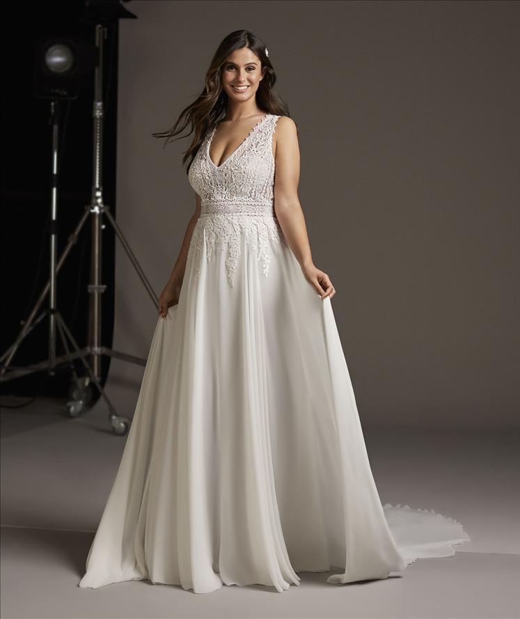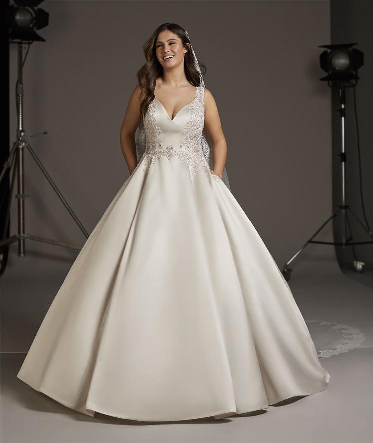 Dalla taglia 50 alla 64 potrai provare i vari abiti trovando quello che più riesce a farti sentire sposa incarnando la tua idea di cerimonia sia questa tradizionale o originale e fantasiosa.