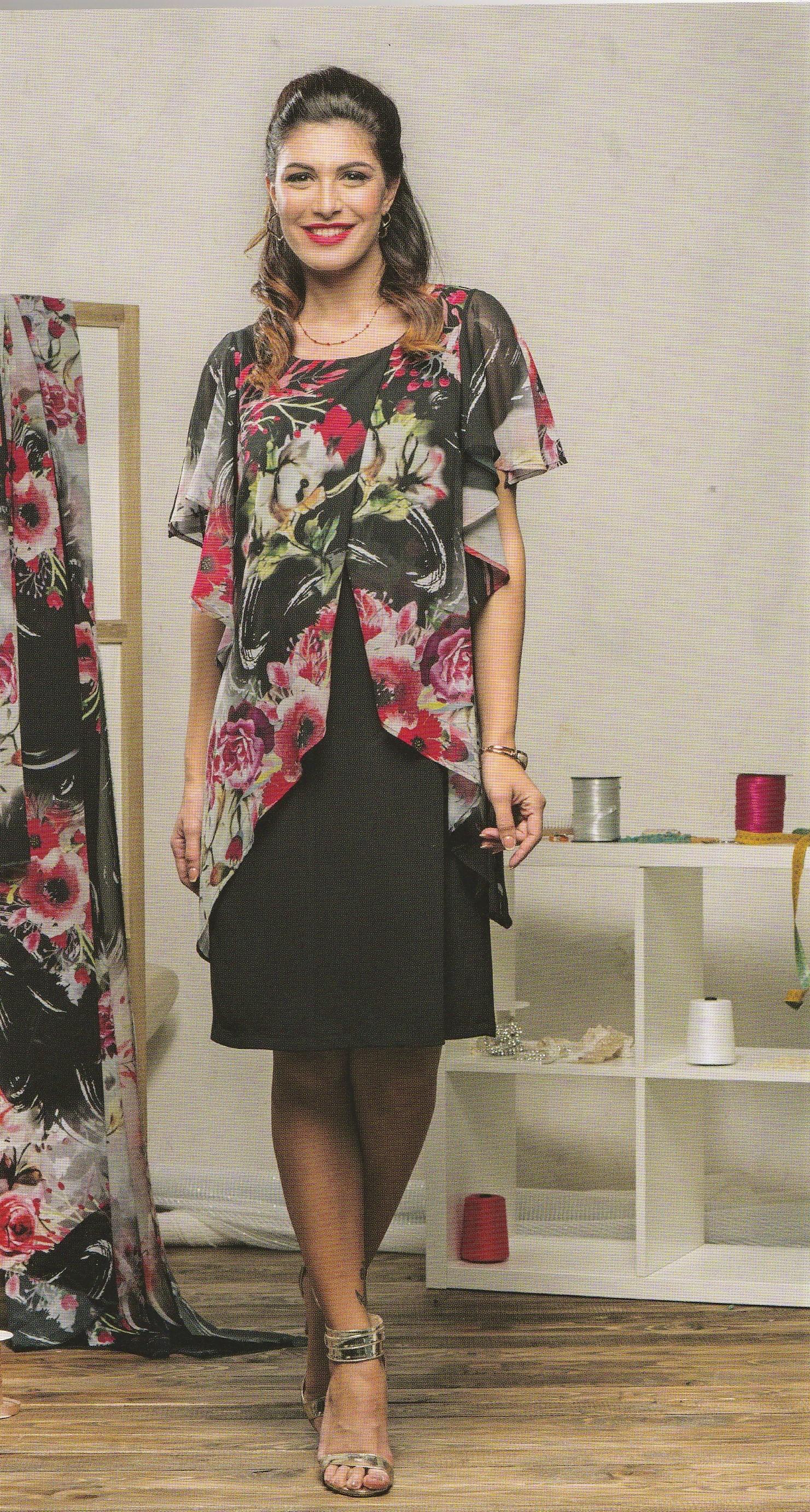 Abito fantasia /nero corto, cerimonia donna curvy -35% SPEDIZIONI GRATUITE