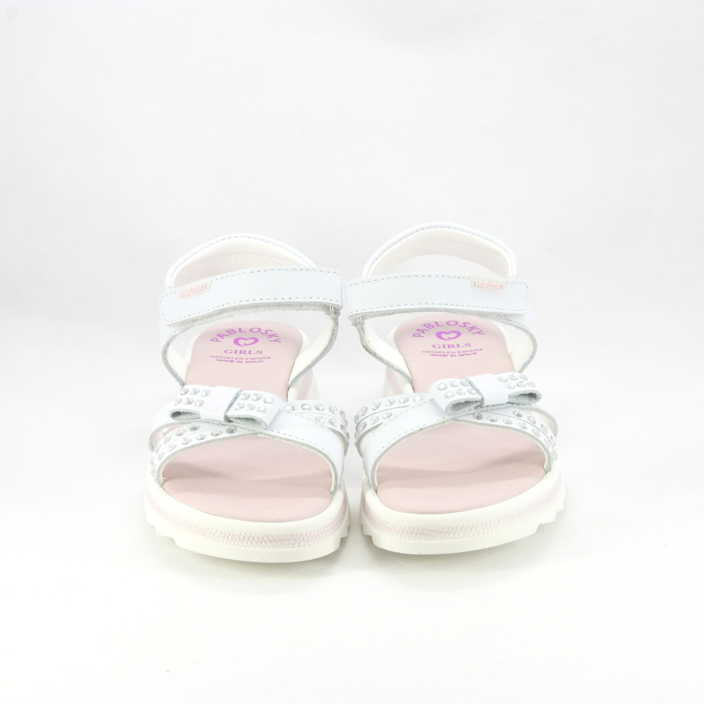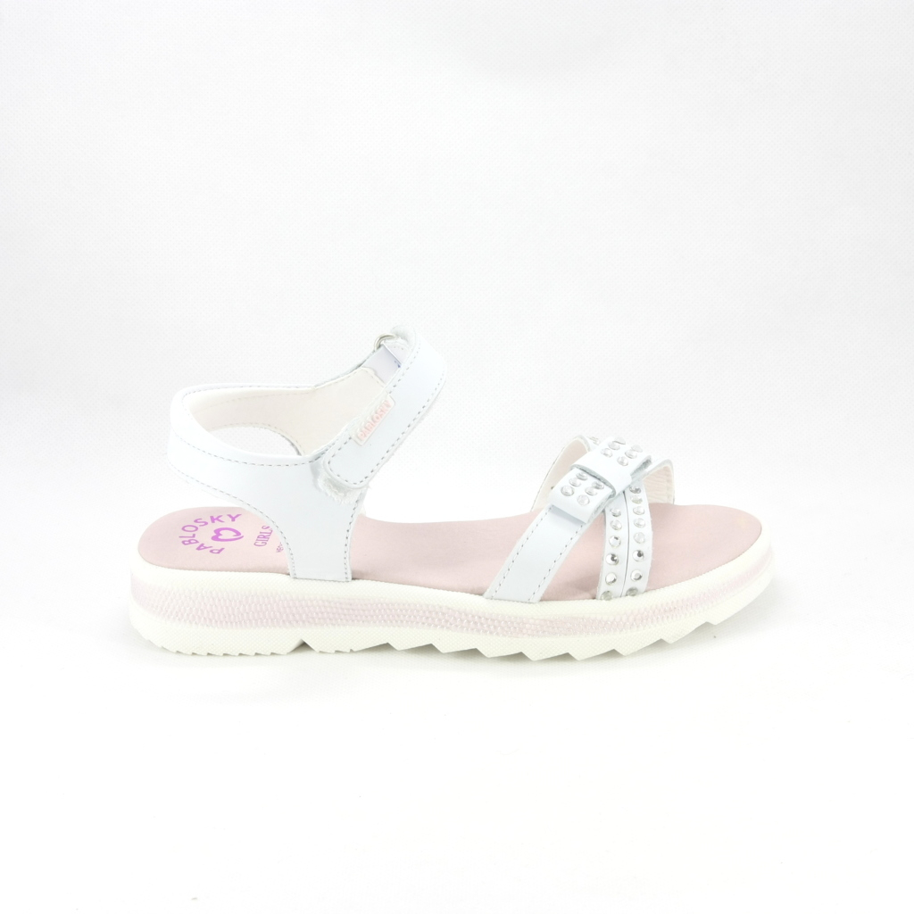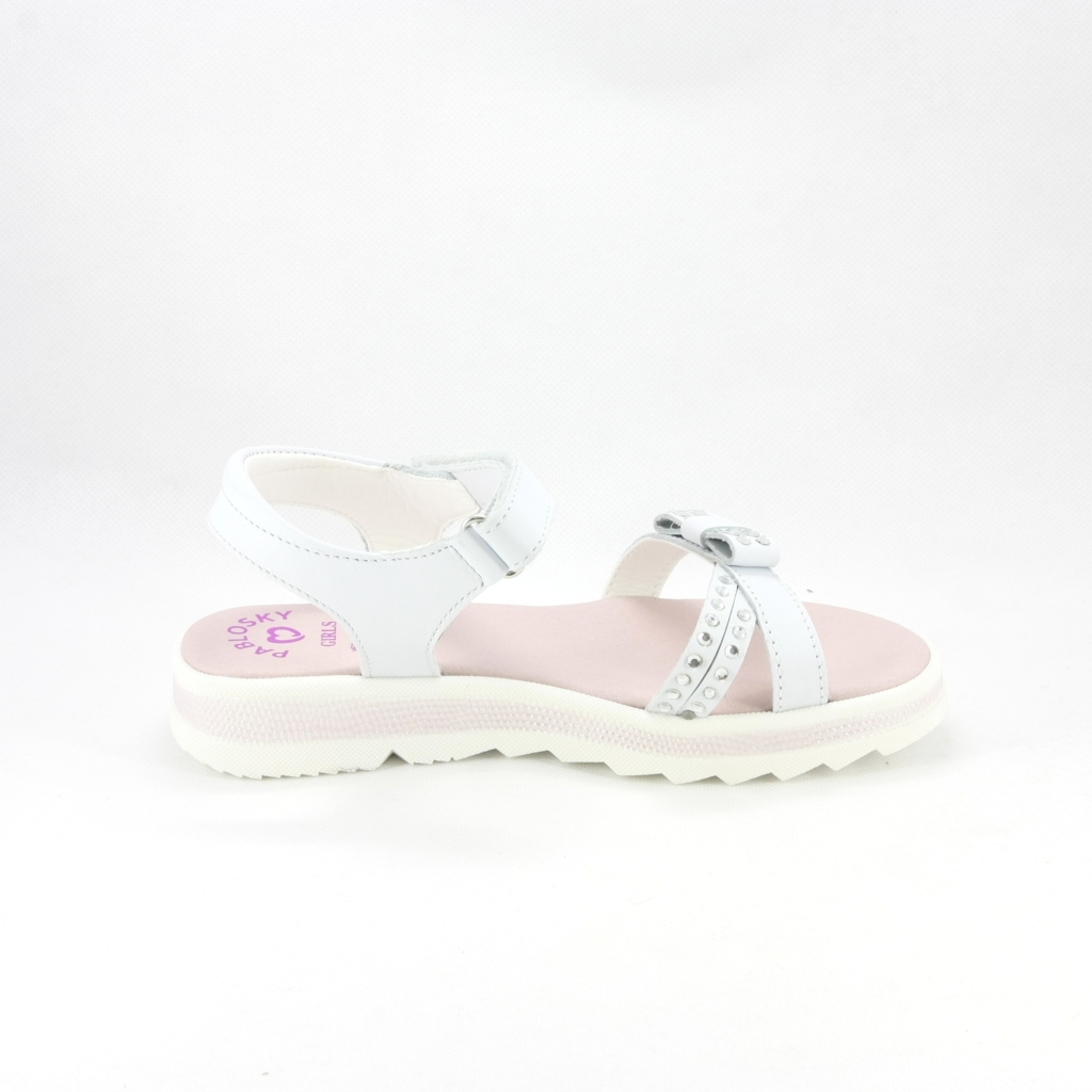 Sandalo cerimonia bimba elegante realizzato con cinghetta e decoro cristalli e fiocchetto.