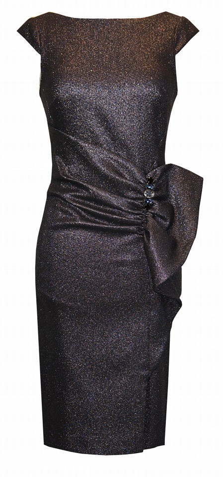 Abito cerimonia donna a tubino relizzato in morbido stretch lurex, colore base nero con riflessi multicolore dal taglio semplice e realizzato con tessuto particolare un abito capace di adattarsi ad ogni occasione, disponibile con maniche 3/4