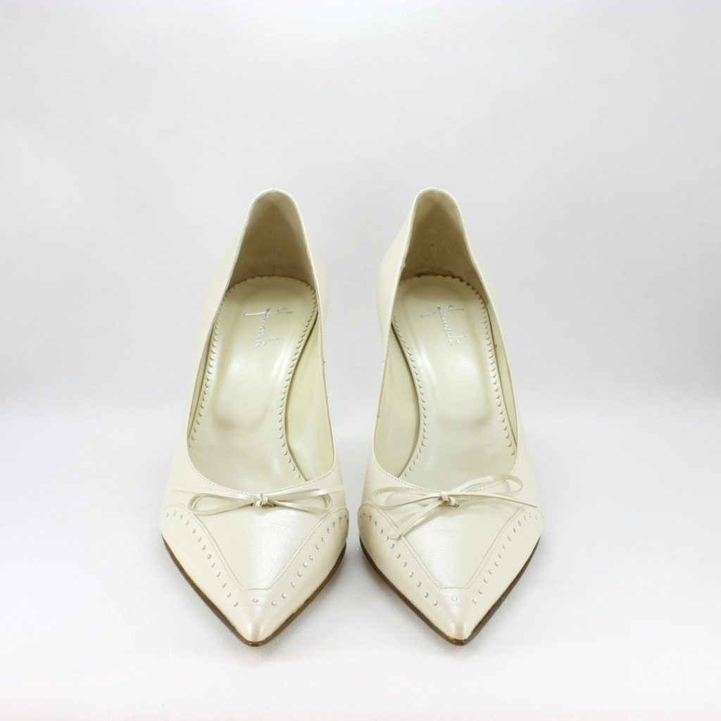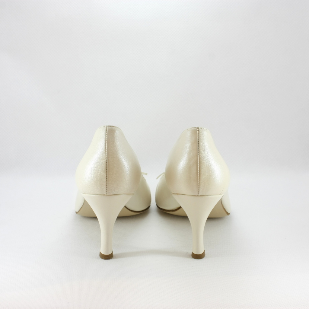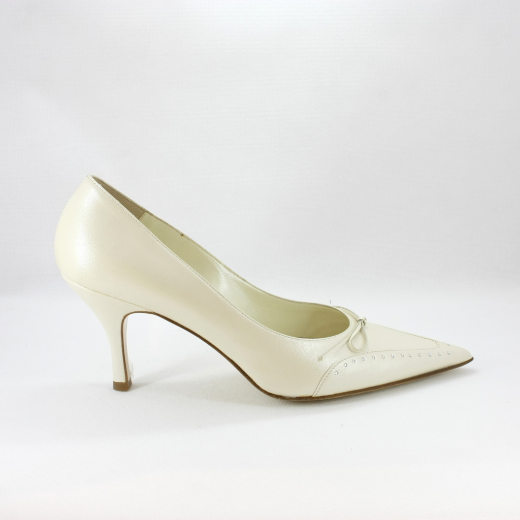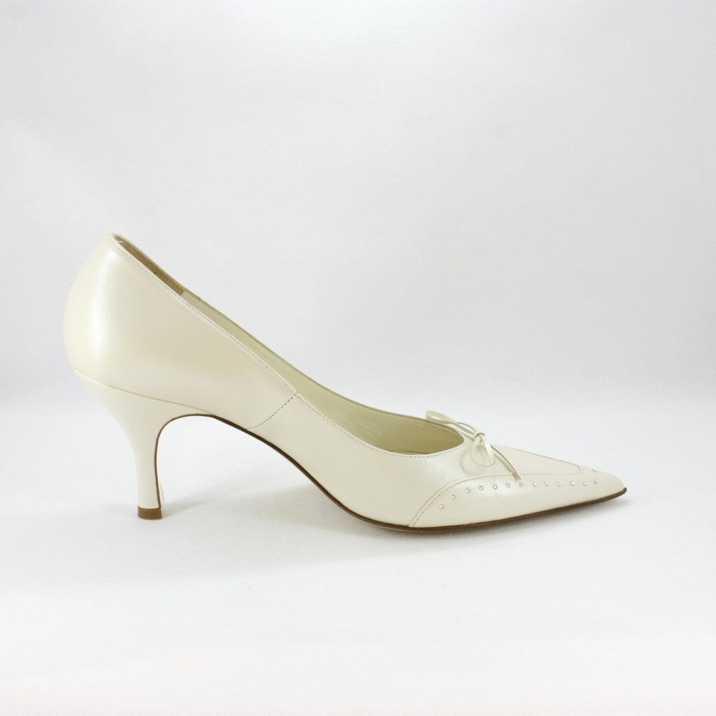 Scarpa donna elegante da sposa e cerimonia realizzata in pelle color avorio con applicazione fiocchetto e cristalli.