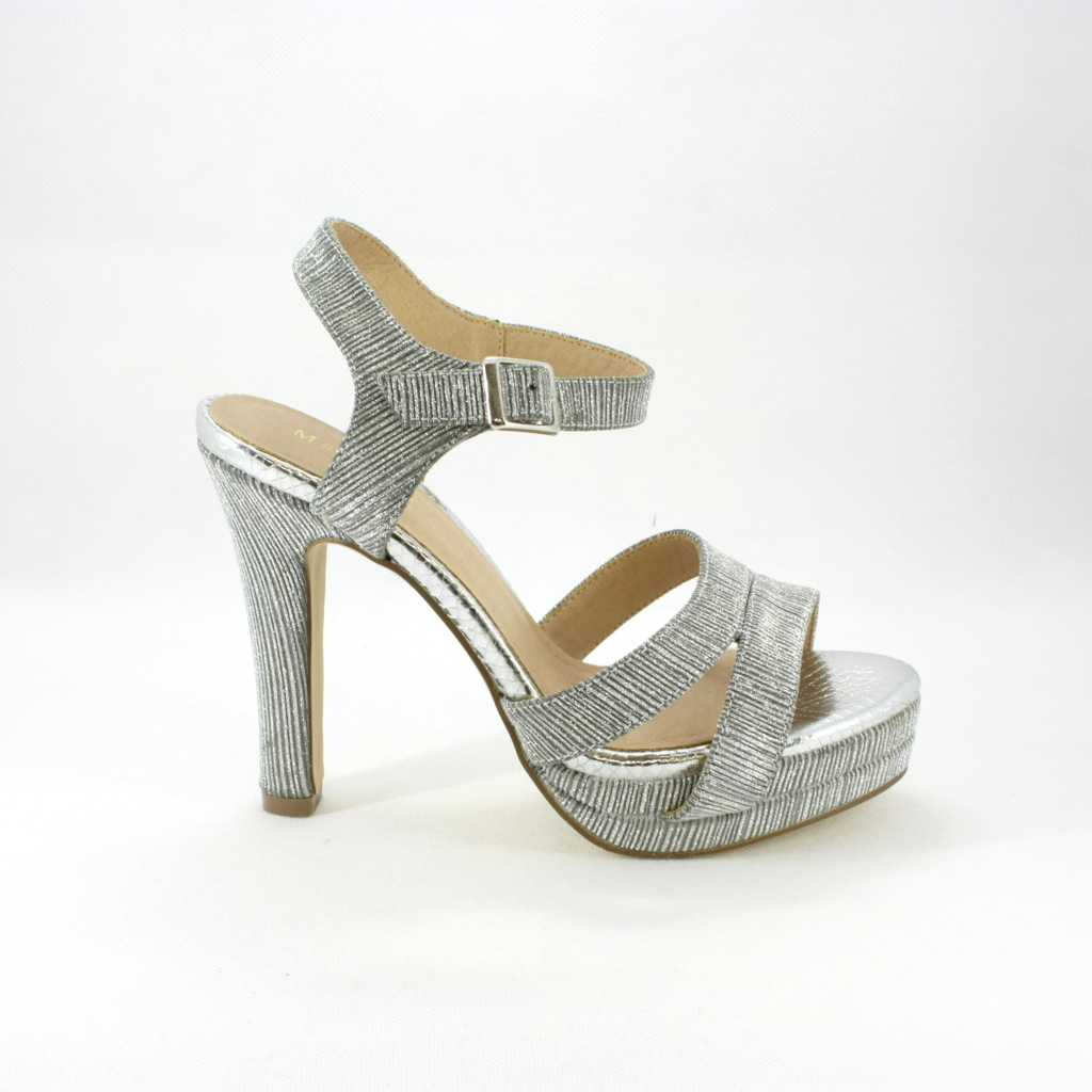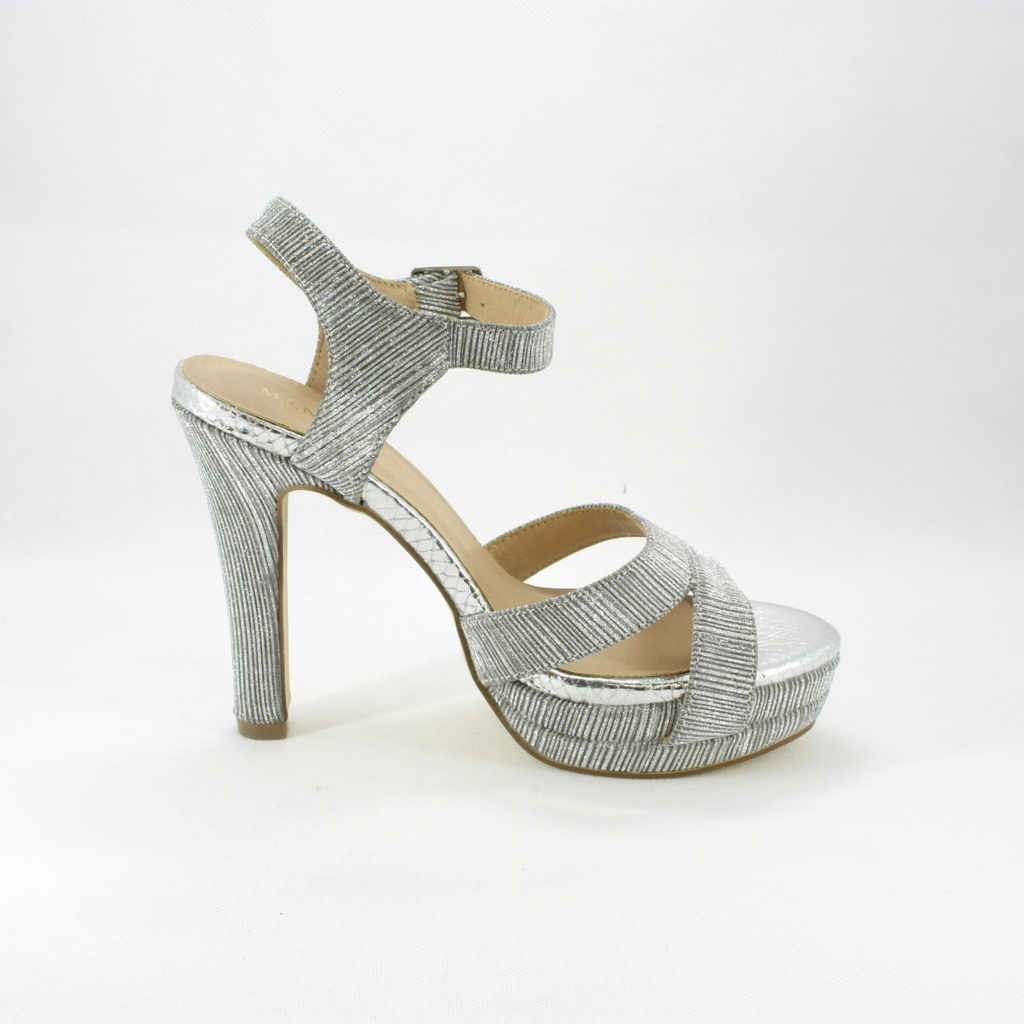 Sandalo cerimonia donna e sposa color argento/piombo con tacco alto
