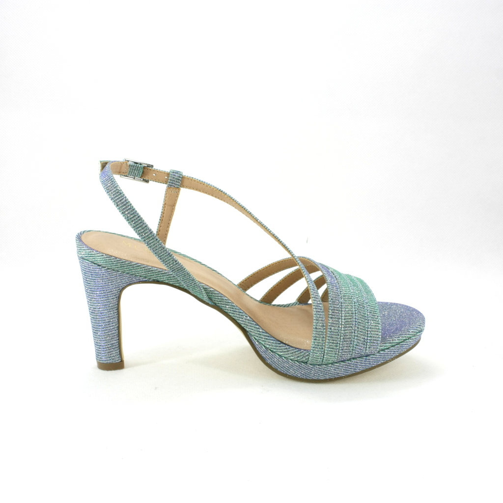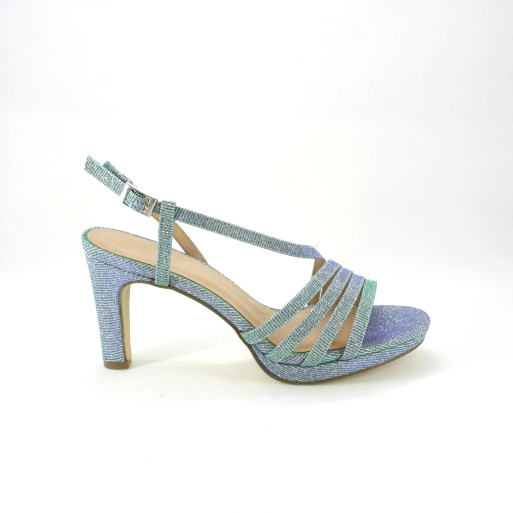 Sandalo cerimonia donna realizzato in tessuto glitter.