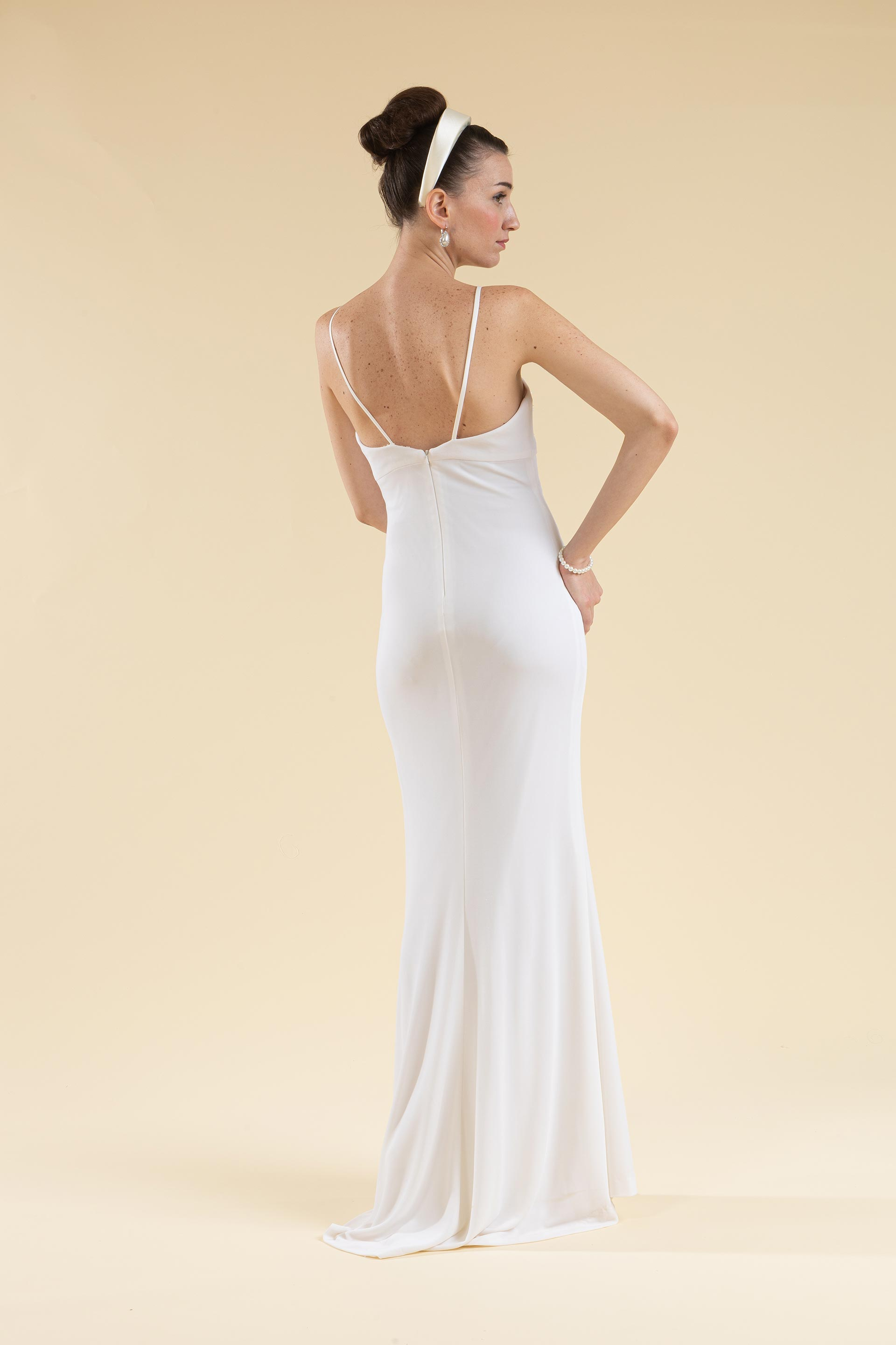 Abito sposa morbido con scollo a cuore.
