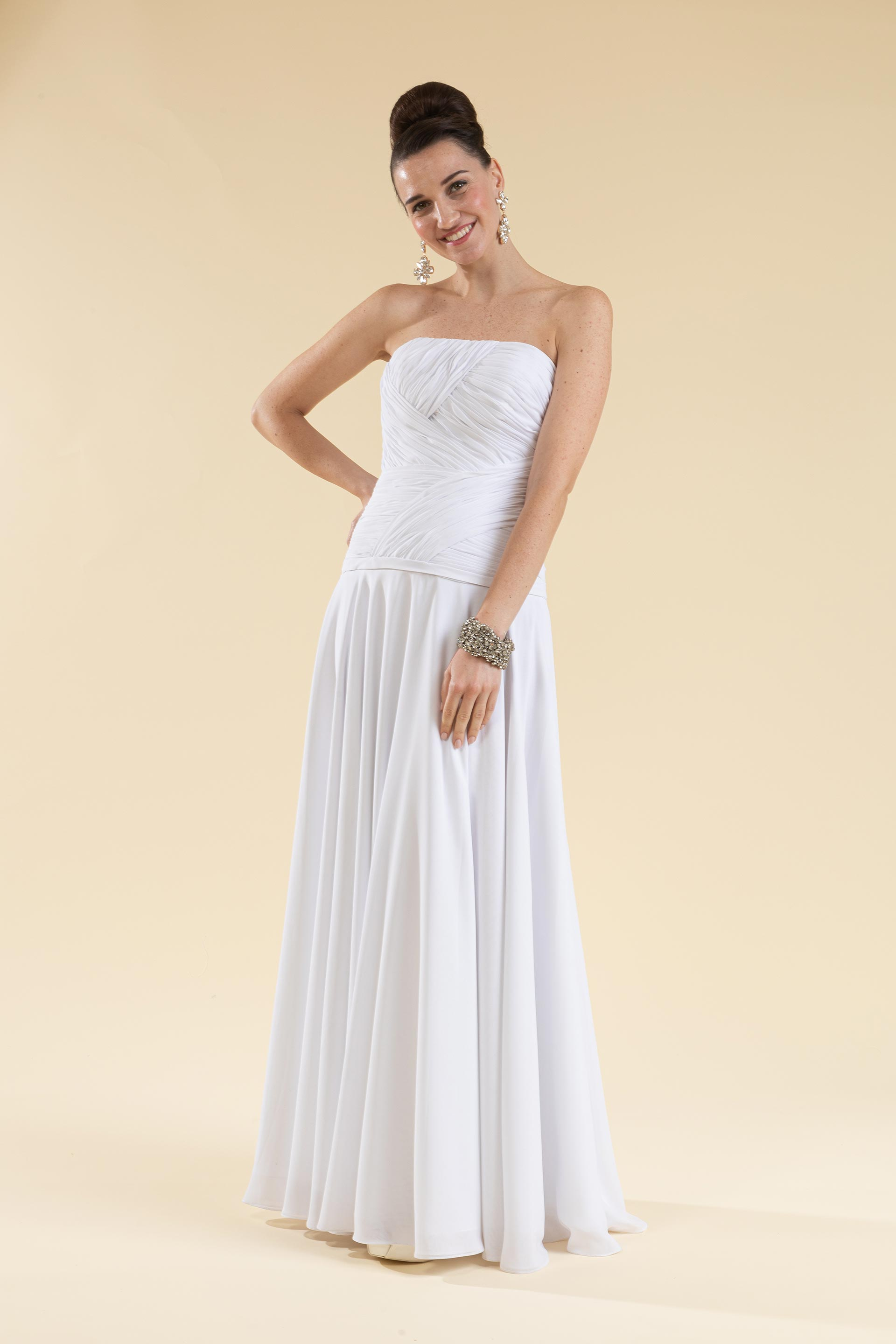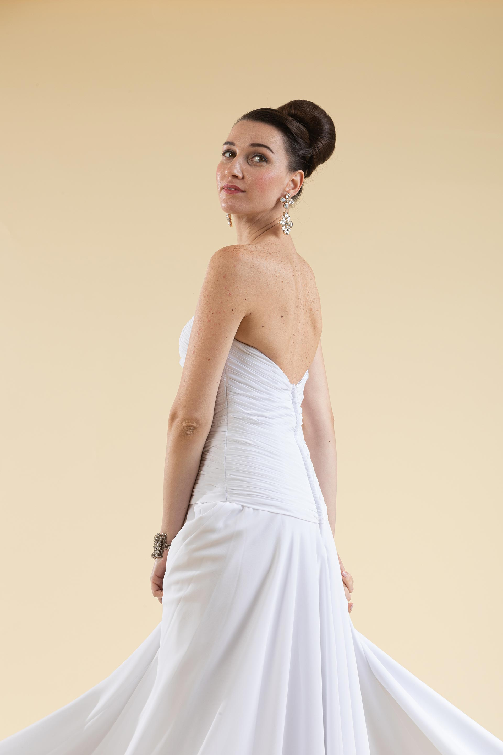 Abito sposa drappeggiato a décolleté.