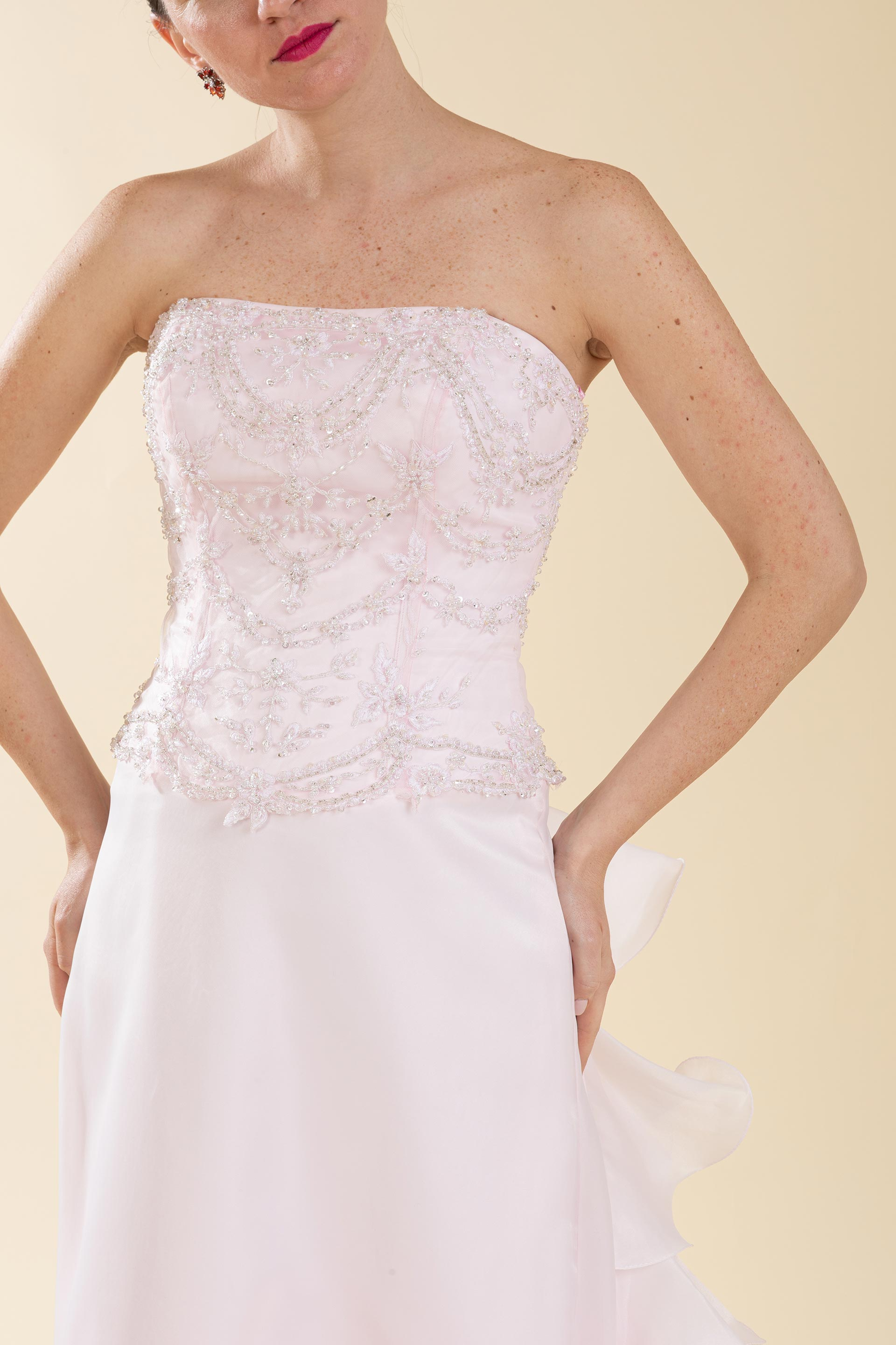 Abito sposa color rosa con coda a balze -25% SPEDIZIONI GRATUITE