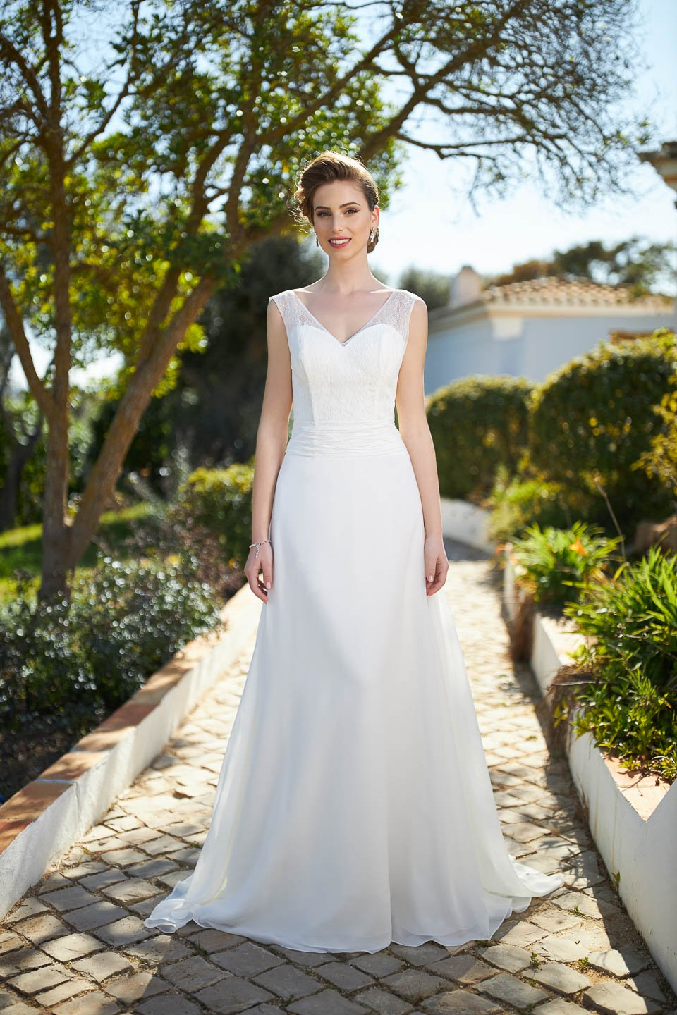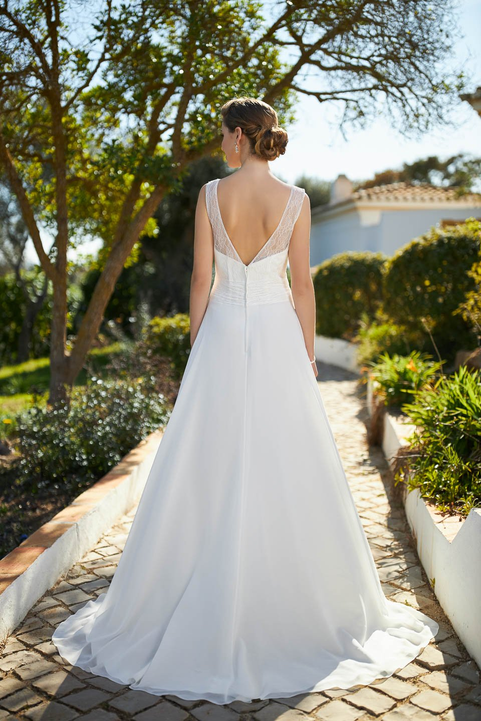 Abito sposa lungo borbido scivolato in pizzo con scollo a V.