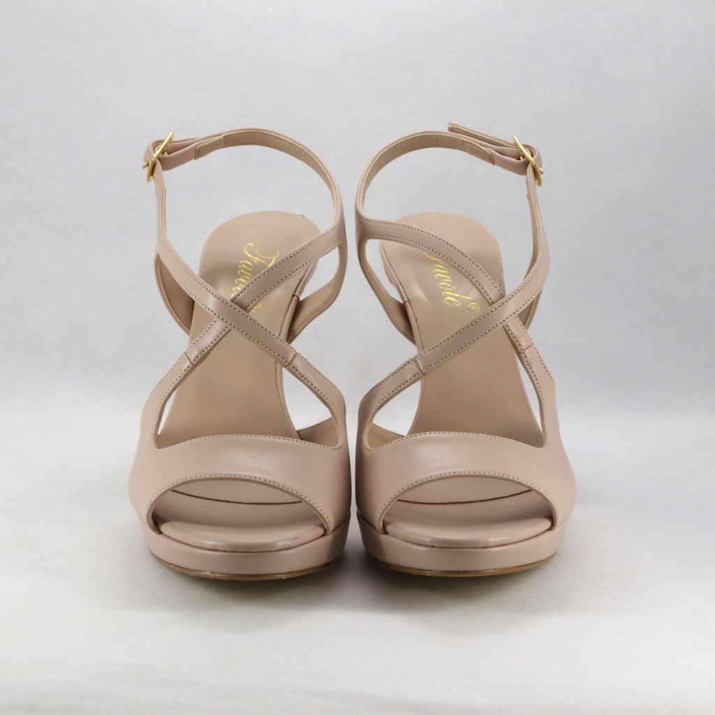 Sandalo cerimonia donna incrociato con plateau e tacco sfilato realizzato nella nuance rosa cipria nude, un saldalo capace di adattarsi ad ogni look e colore, interamente in nappa molto confortevole.Altezza tacco: 10 cm