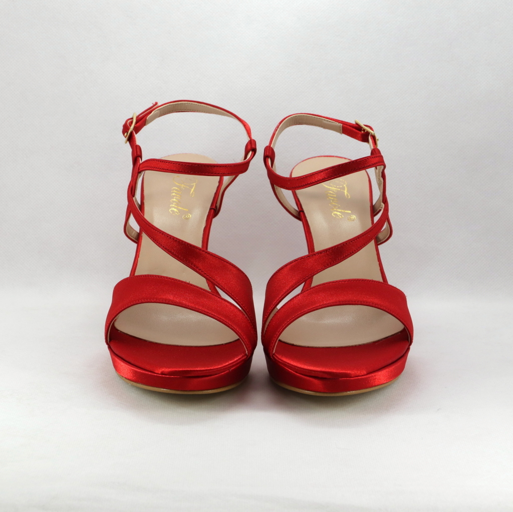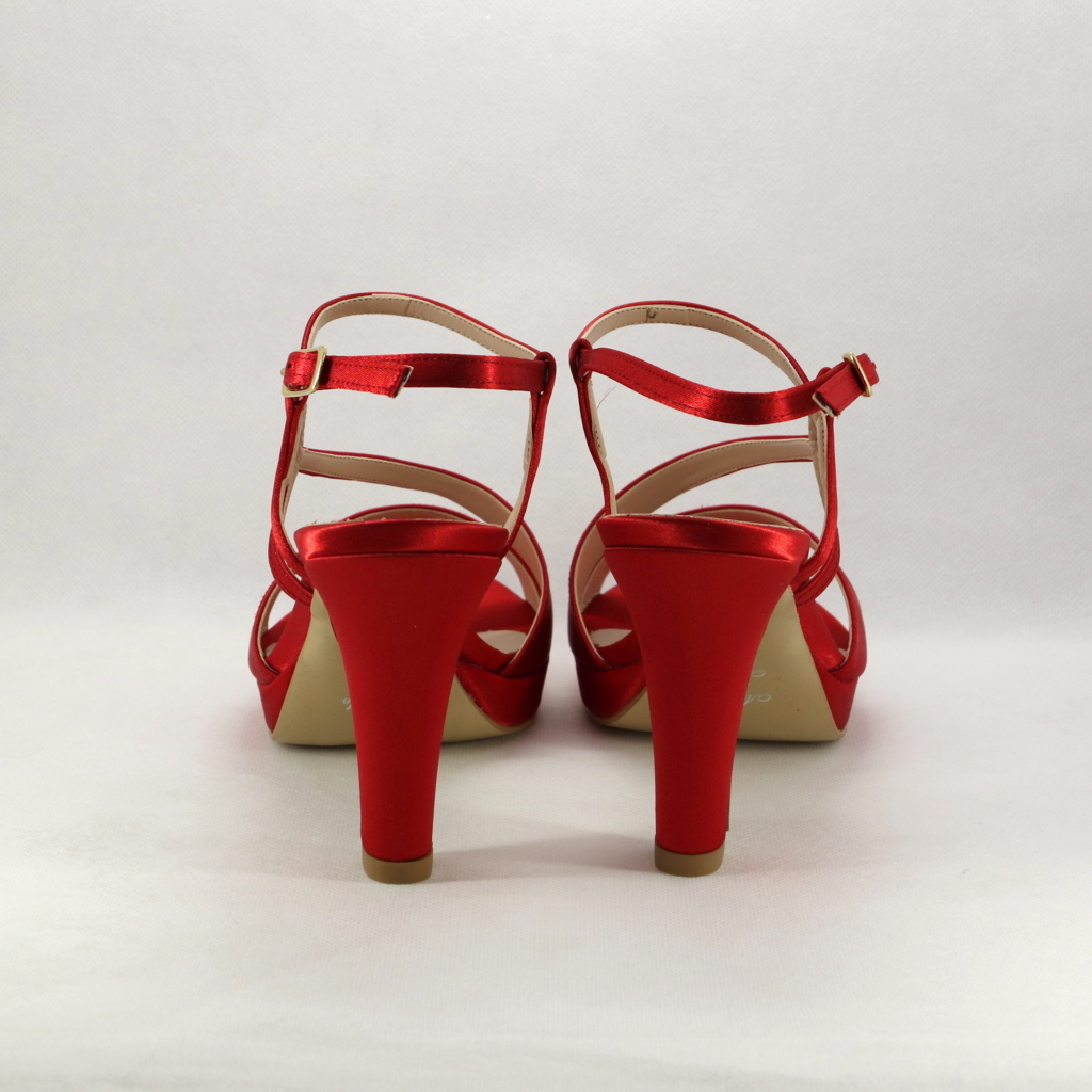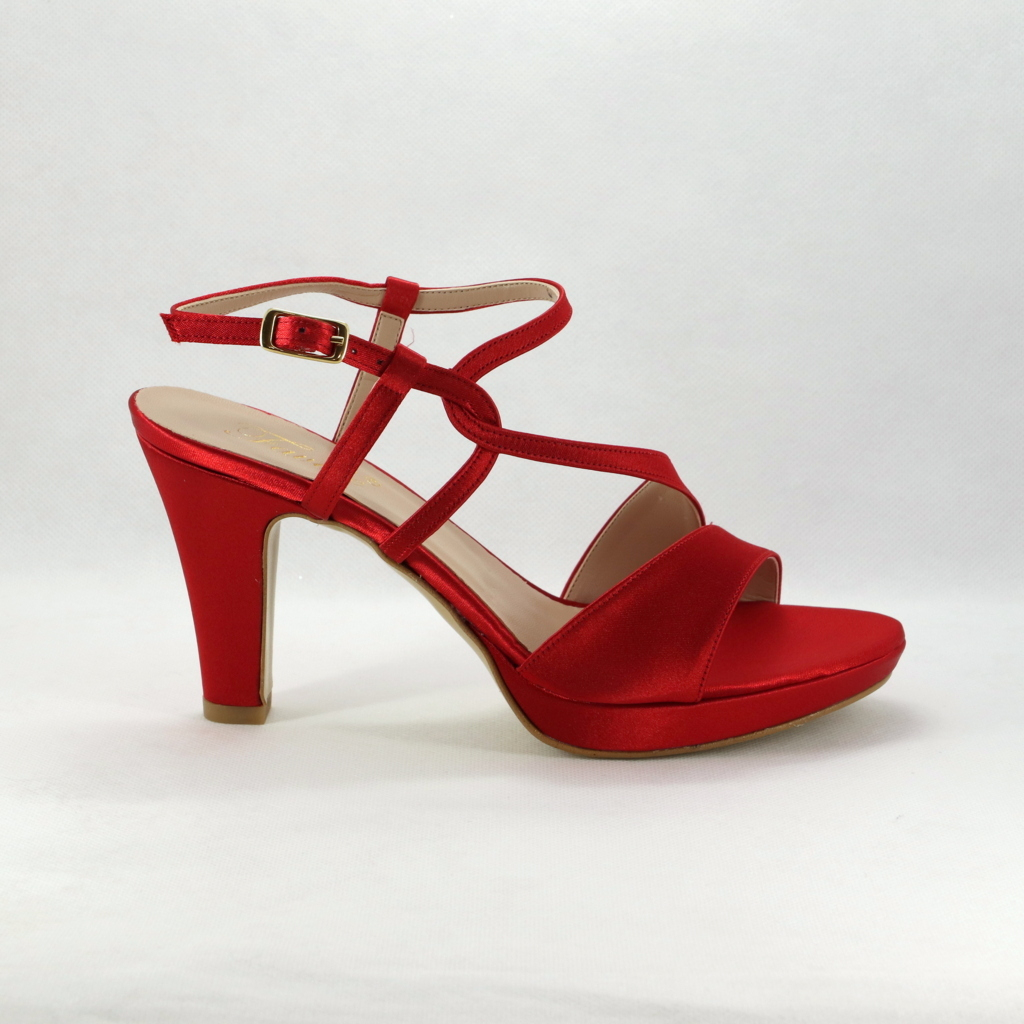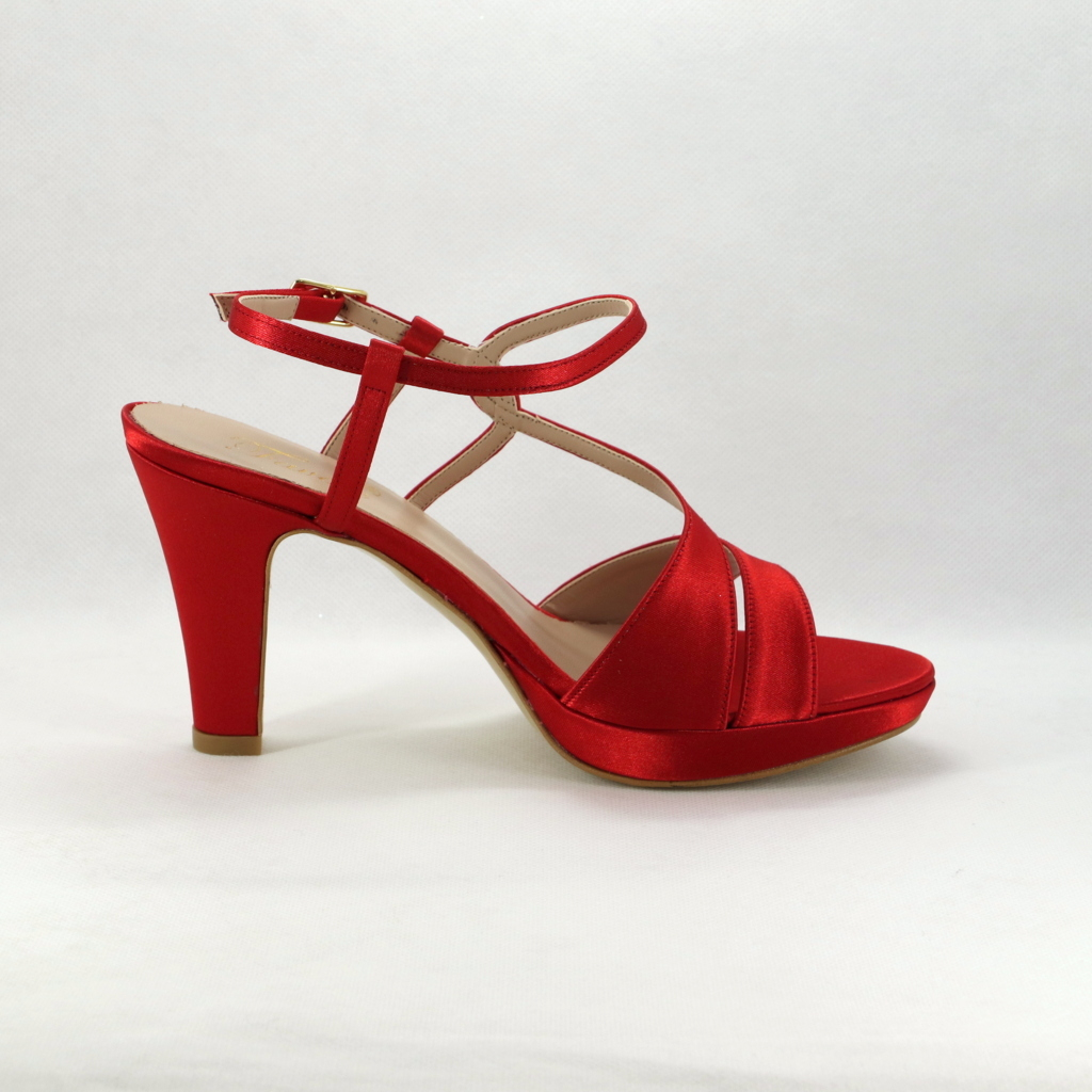 Sandalo cerimonia donna realizzato in raso rosso.