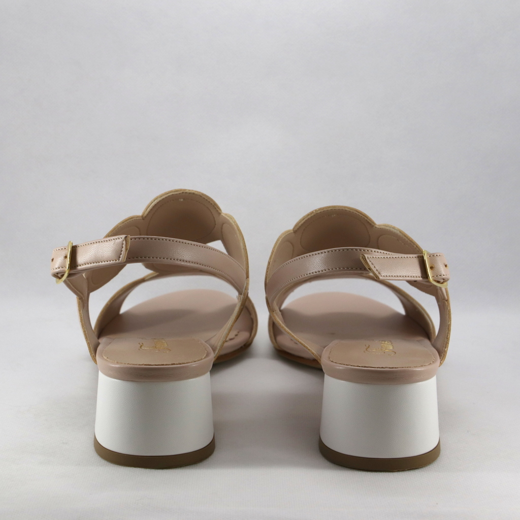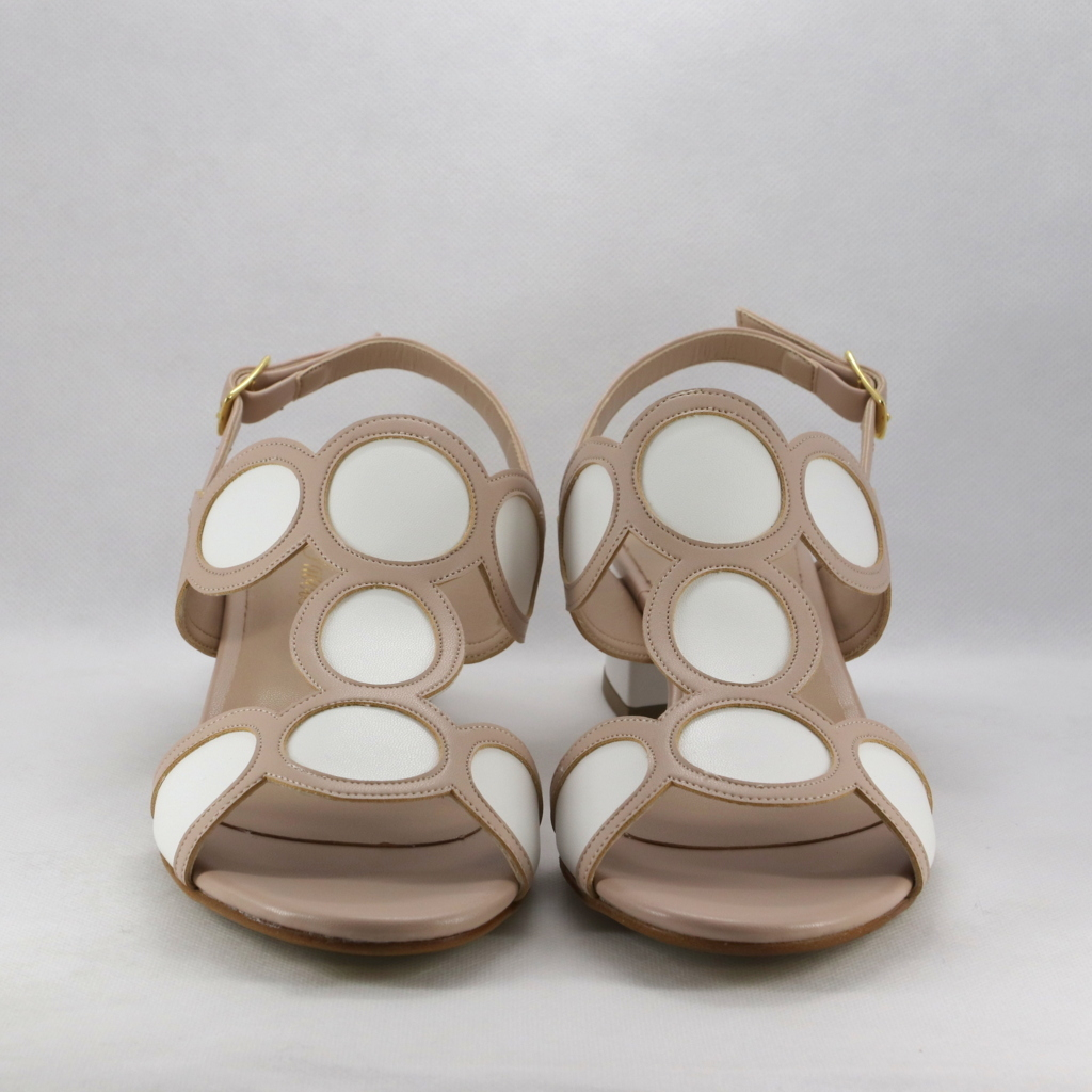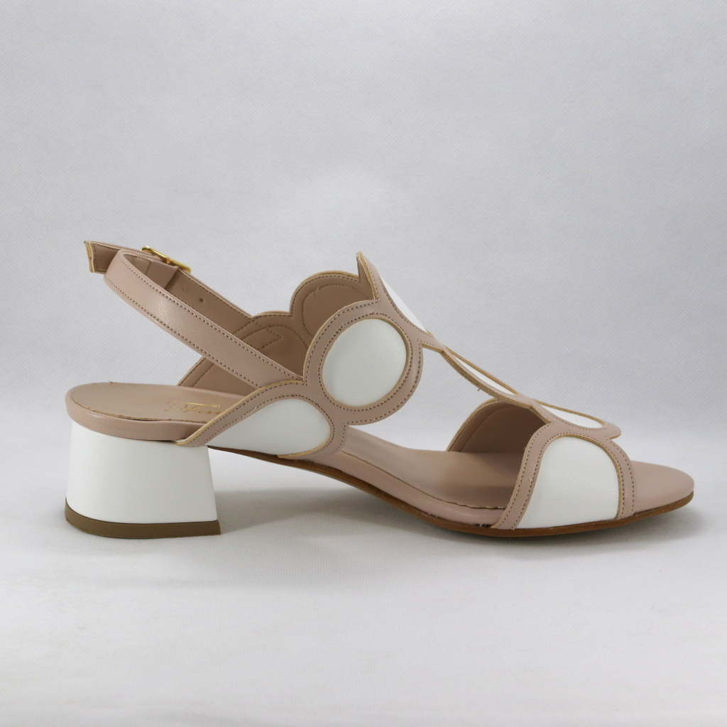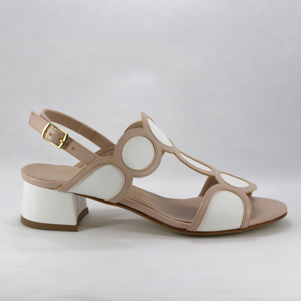 Sandalo cerimonia donna interamente realizzato in morbidissima nappa con tacco largo color bianco e rosa cipria.