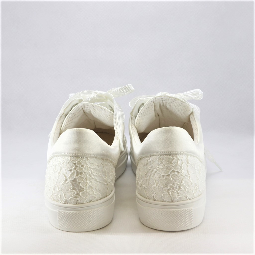 Sneakers da sposa realizzate in pizzo color bianco naturale, un idea originale o un'alternatva ai tacchi, ideale per chi non vuole rinunciare alla comodità e all'originalità nel giorno delle nozze.