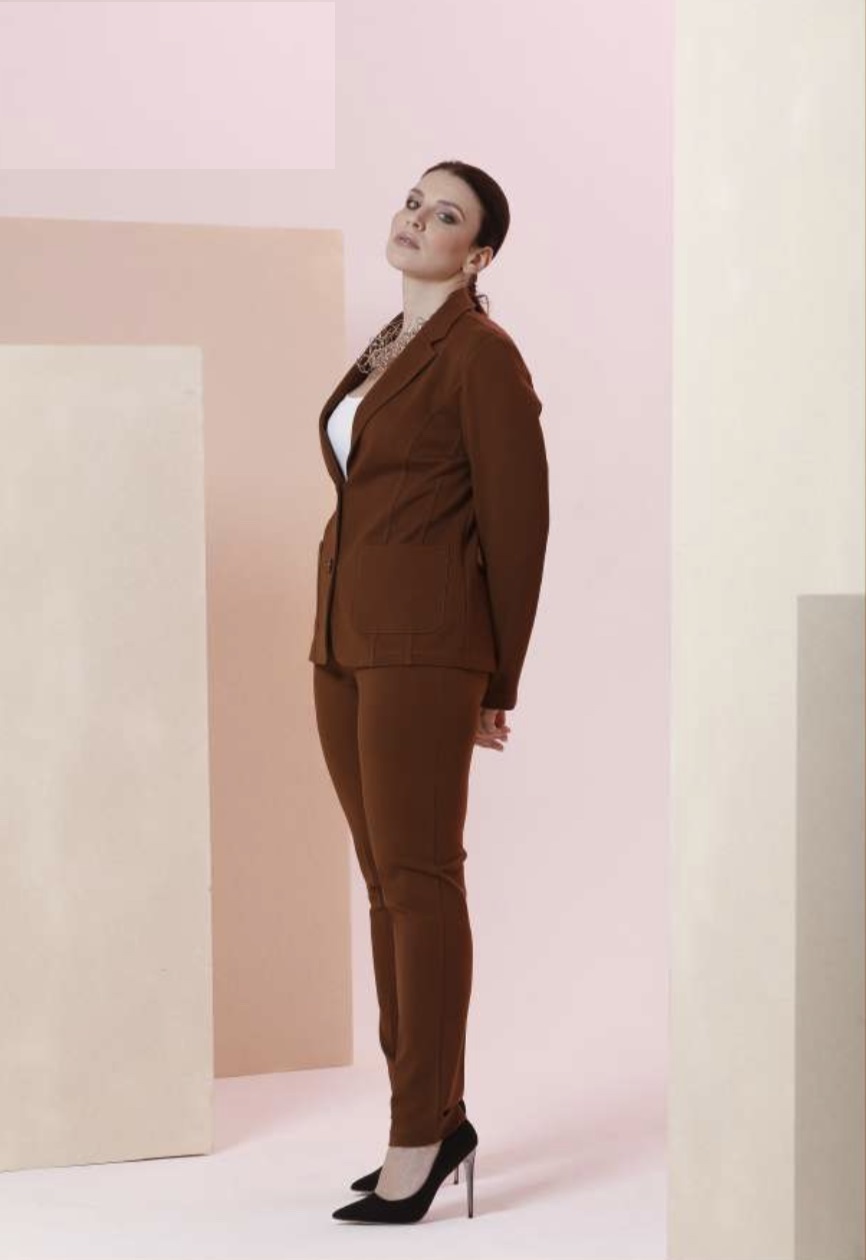 Completo 3 pz. cerimonia donna composto da giacca e pantalone in tessuto crepe elasticizzato e camicia fantasia in rasatello.Taglie conformate