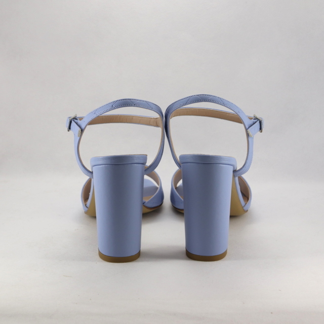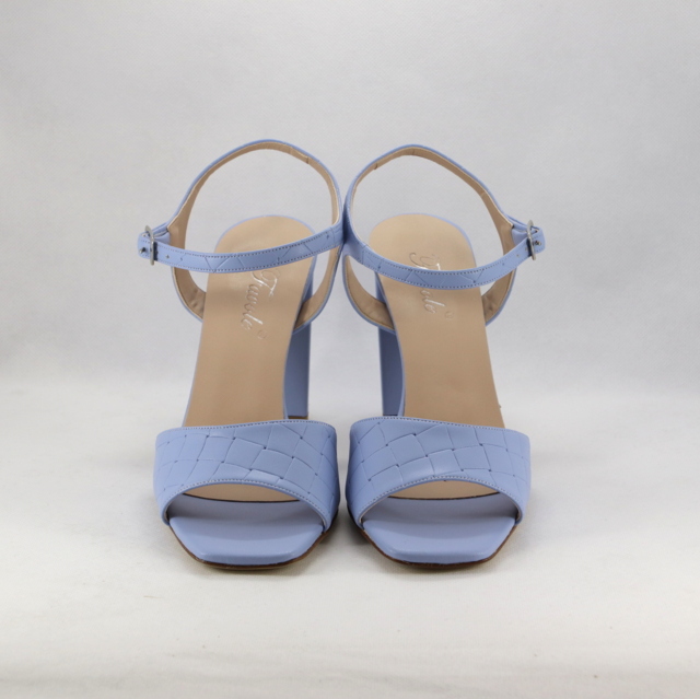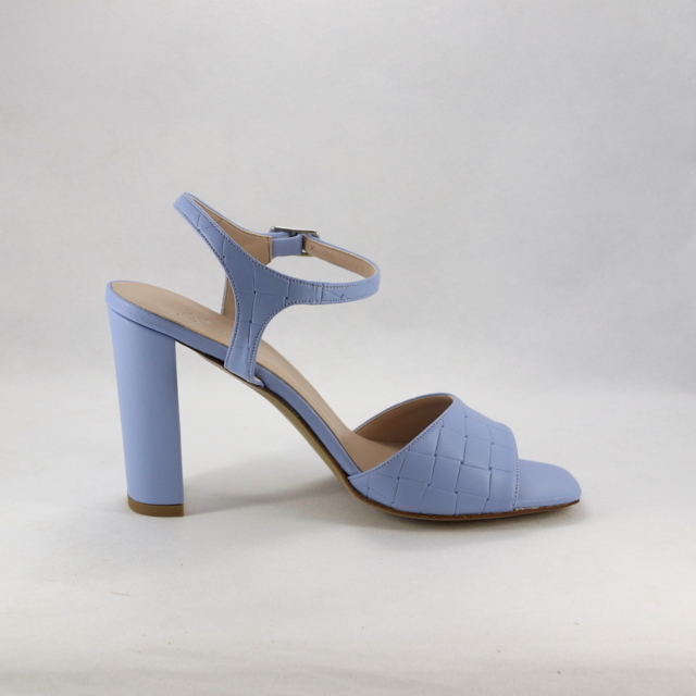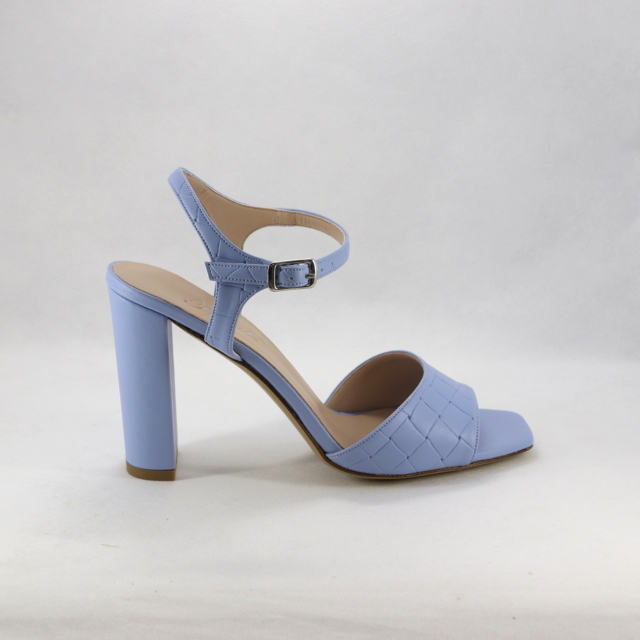 Sandalo donna con tacco largo e cinghietta regolabile alla caviglia realizzato in eco pelle con effetto matelassè.