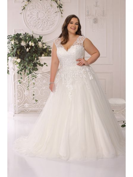 Abito sposa curvy ampio con gonna tulle.