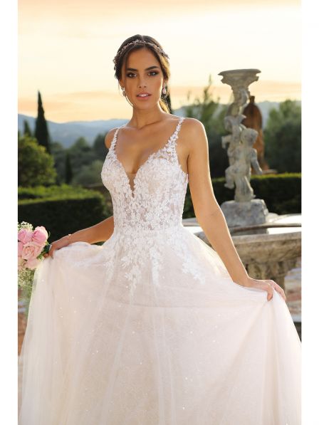 Abito sposa ampio con scollo a V.
