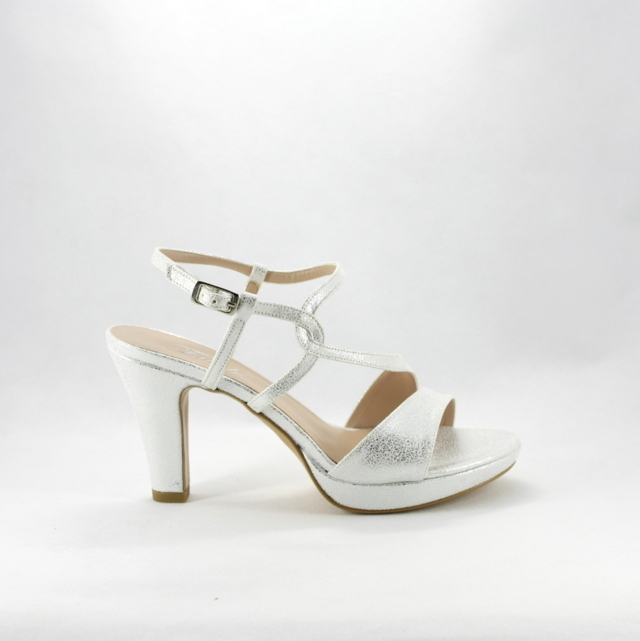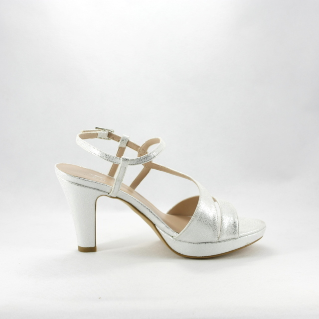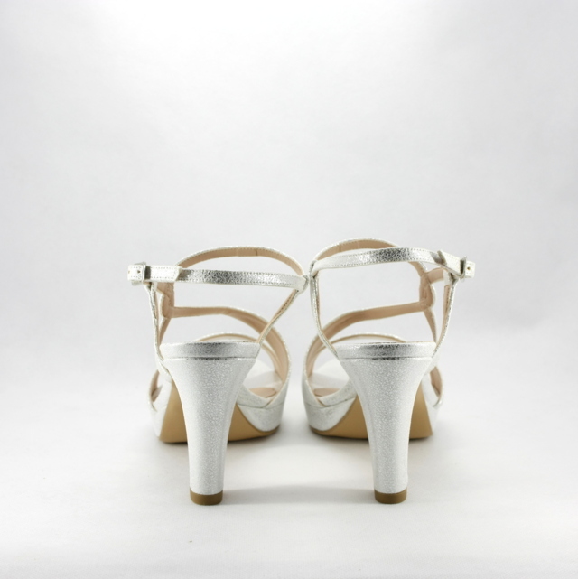 Sandali cerimonia donna color argento, cinghietta regolabile e plateau assicurano confort e comodità, il colore neutro rende questo sandalo di facile abbinamento ai vari look.