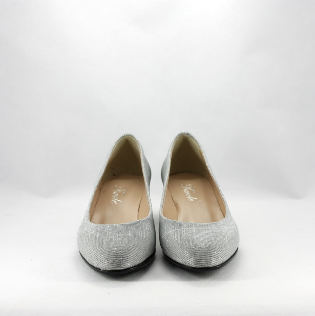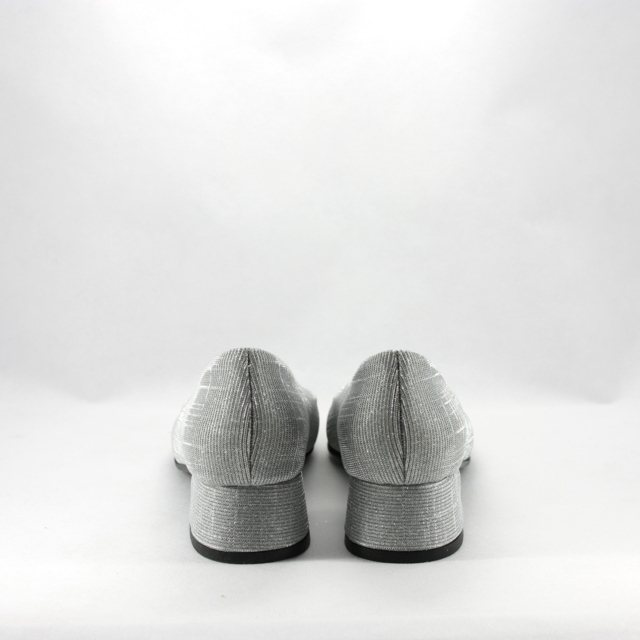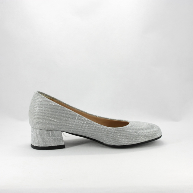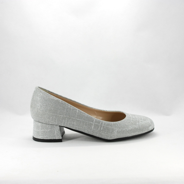 Scarpa cerimonia donna elegante comoda con tacco largo e pianta comoda color argento micro gliter.