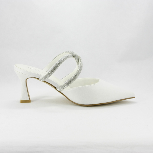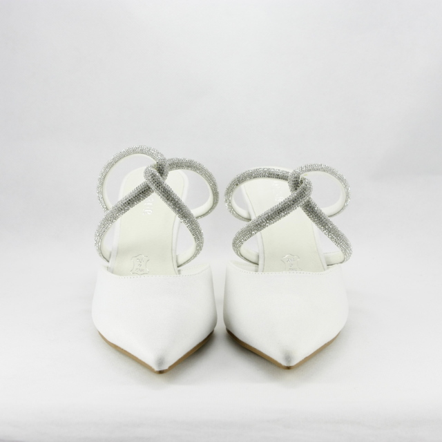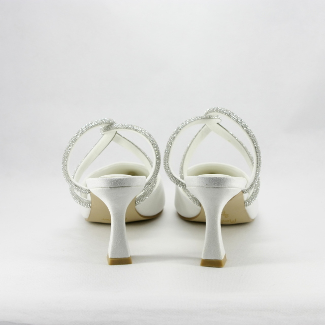Sabot sposa realizzato in tessuto di raso avorio, impreziosito da applicazione cristalli argento.