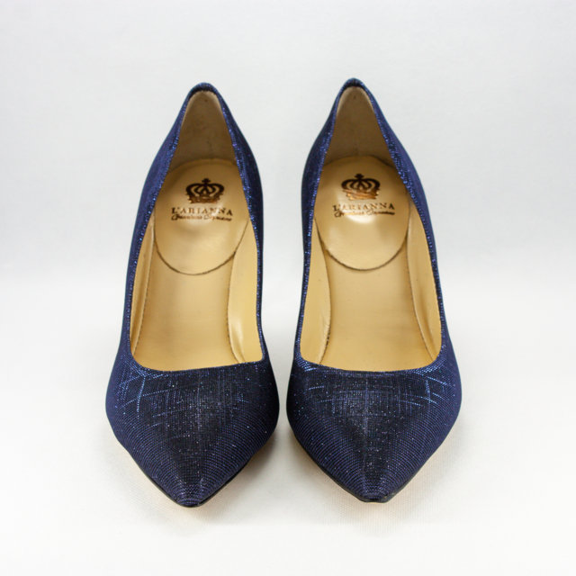 Décolleté cerimonia donna eleganti realizzate con tacco sfilato in micro glitter blu.