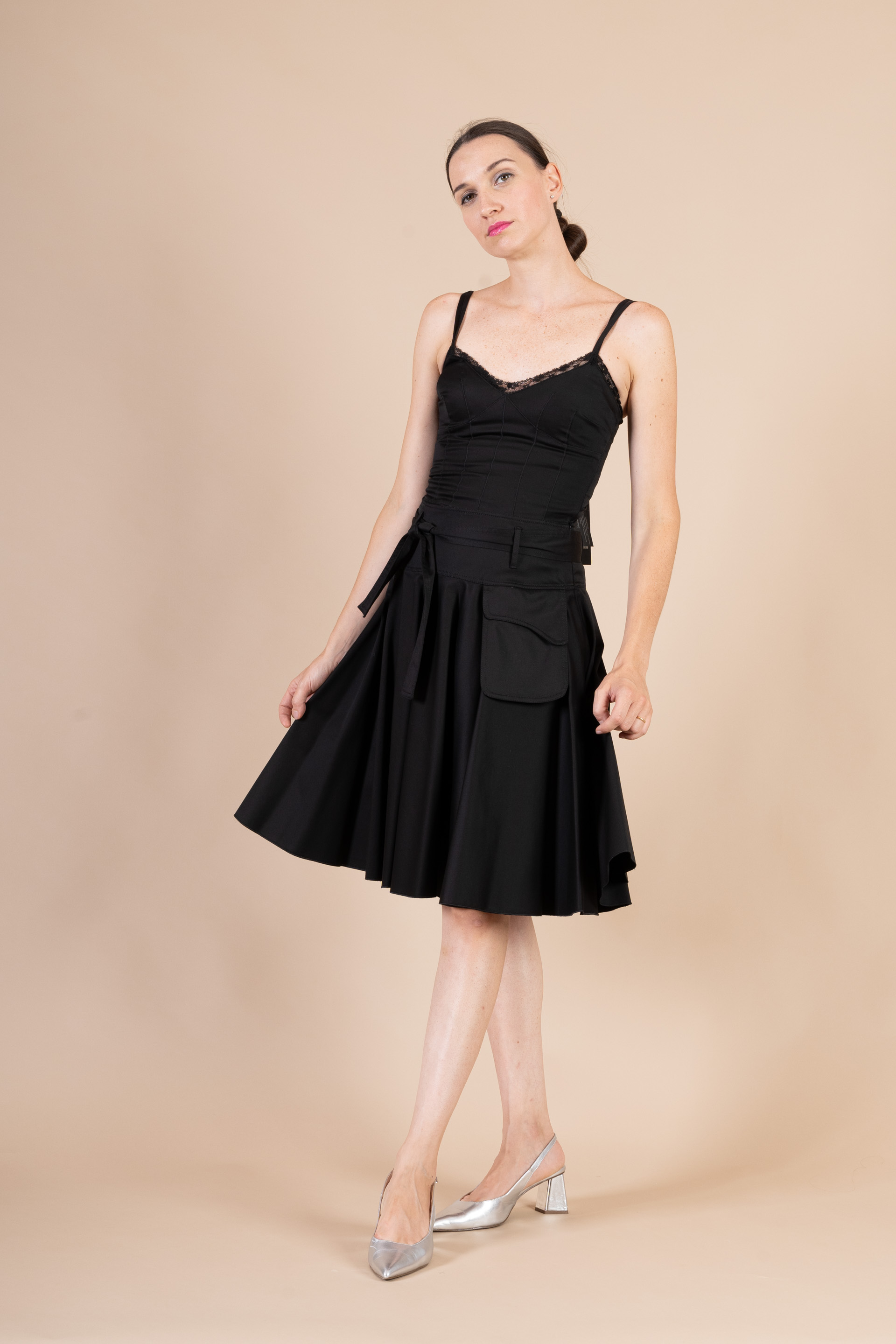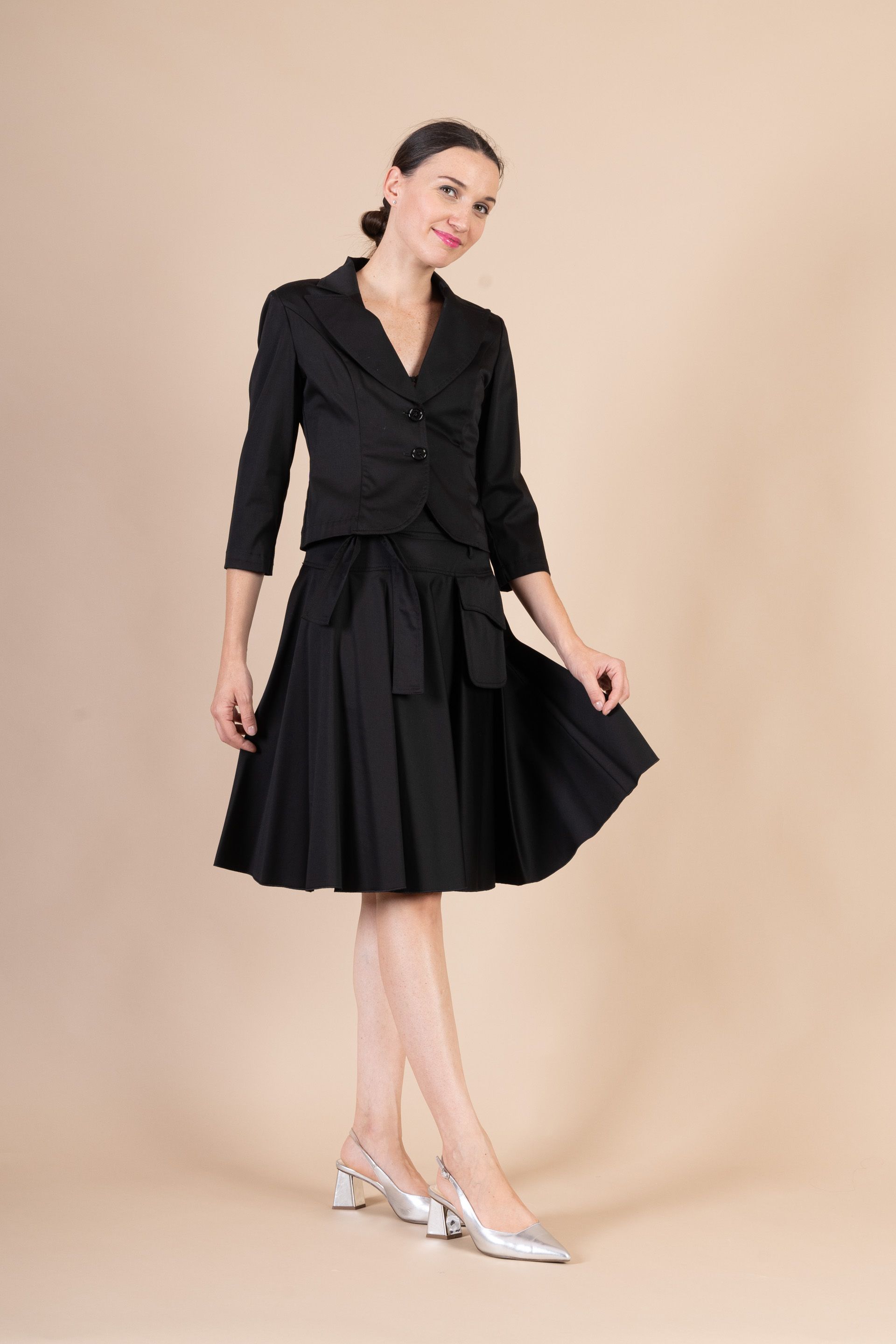 Completo cerimonia ragazza composto da giacca, top con pallina sottile e gonna svasata realizzato in tessuto di morbido cotone.