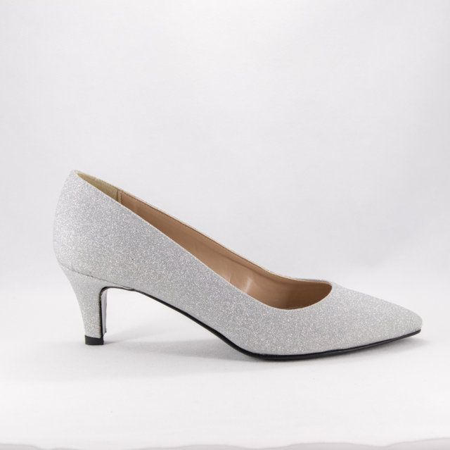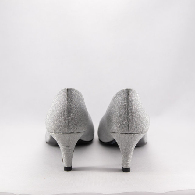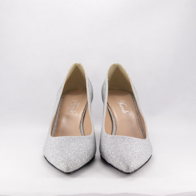 Brilla con eleganza nel tuo giorno speciale con queste raffinate décolleté argentate, impreziosite da un'incredibile finitura in microglitter. Il design classico a punta affusolata aggiunge un tocco di lusso al tuo outfit da sposa, perfetto per una donna che vuole sentirsi al centro dell'attenzione con stile e classe. Il tessuto glitterato cattura la luce in ogni movimento, rendendole l’accessorio ideale per completare qualsiasi abito da sposa.