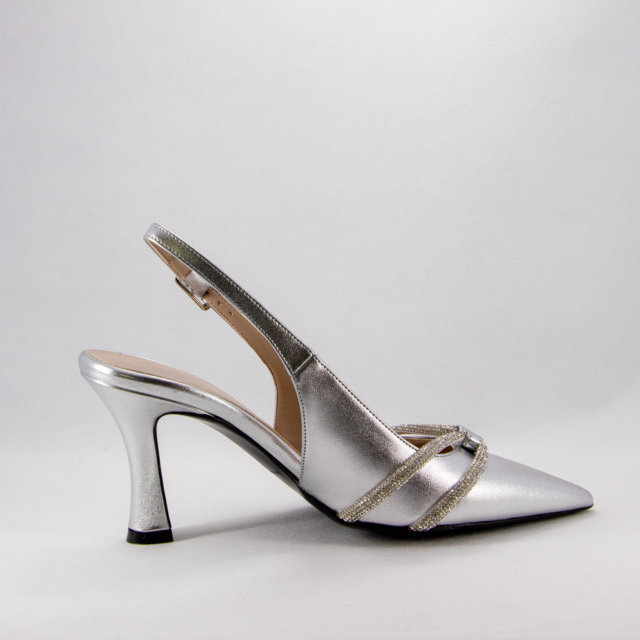 Queste raffinate scarpe décolleté da cerimonia in argento sono l'emblema dell'eleganza moderna. Realizzate con materiali di alta qualità, si distinguono per il cinturino regolabile che assicura una perfetta vestibilità e per i delicati dettagli luminosi sul dorso del piede, che aggiungono un tocco glamour. La punta affusolata e il tacco slanciato conferiscono un fascino senza tempo, perfetto per completare qualsiasi look da cerimonia o occasione speciale. Indossale per brillare in ogni passo e rendere unico il tuo stile.