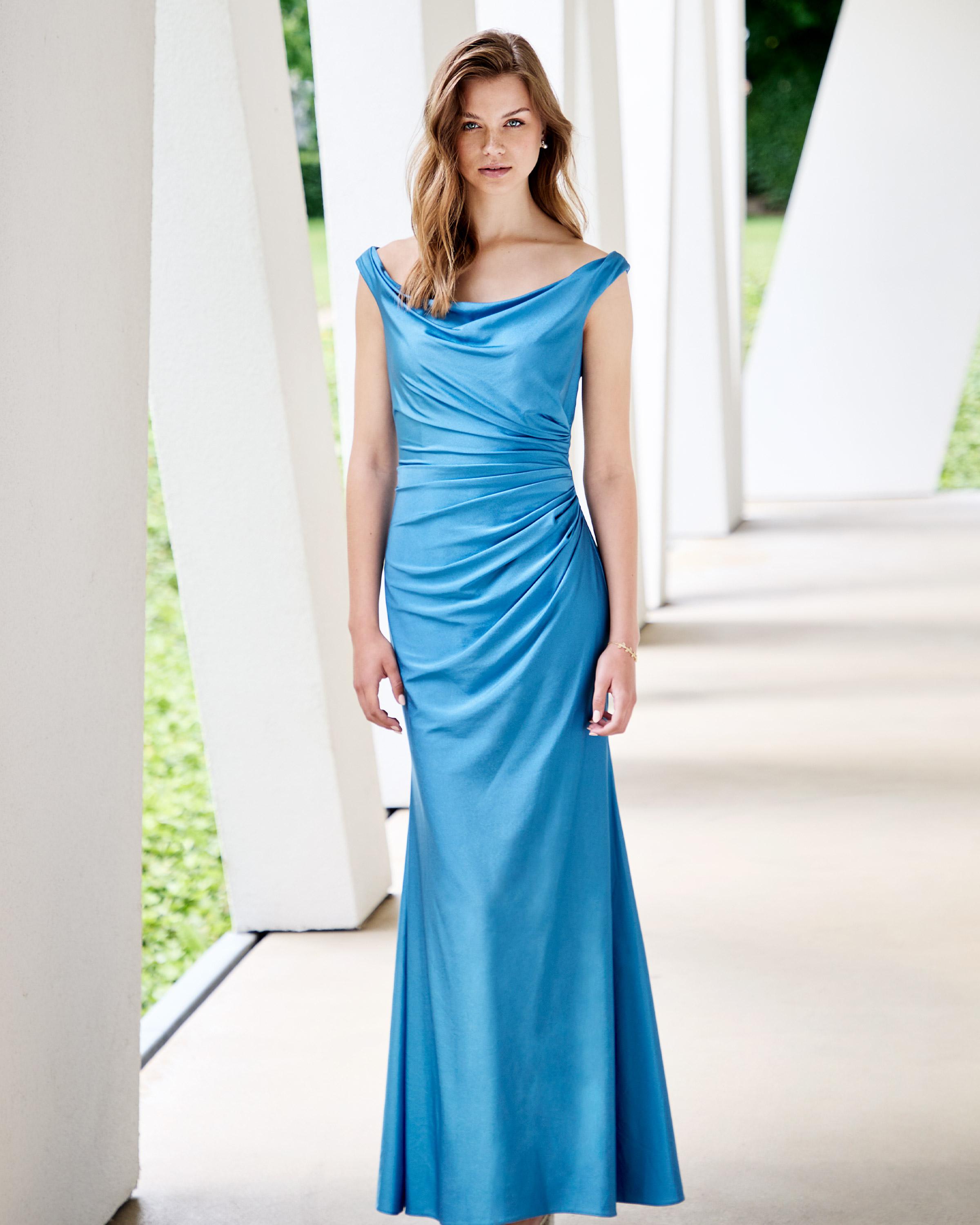 Raffinato, luminoso e incredibilmente femminile, questo abito da cerimonia in raso è pensato per chi desidera un’eleganza che non passa inosservata. Il delicato scollo morbido incornicia il décolleté con naturalezza, mentre il gioco di drappeggi sul corpetto e sul punto vita scolpisce la silhouette in modo armonioso, valorizzando le forme con discrezione e stile.