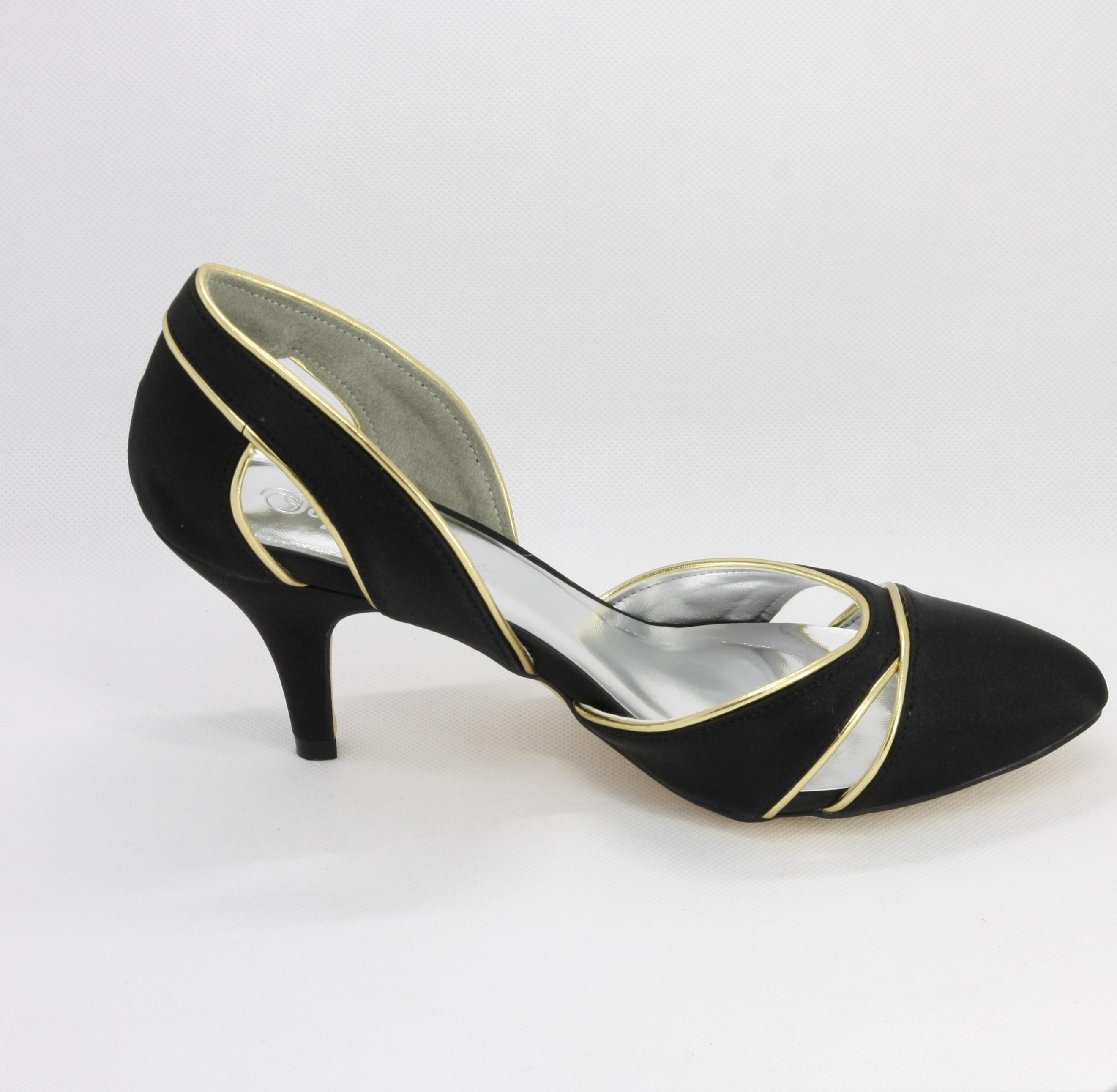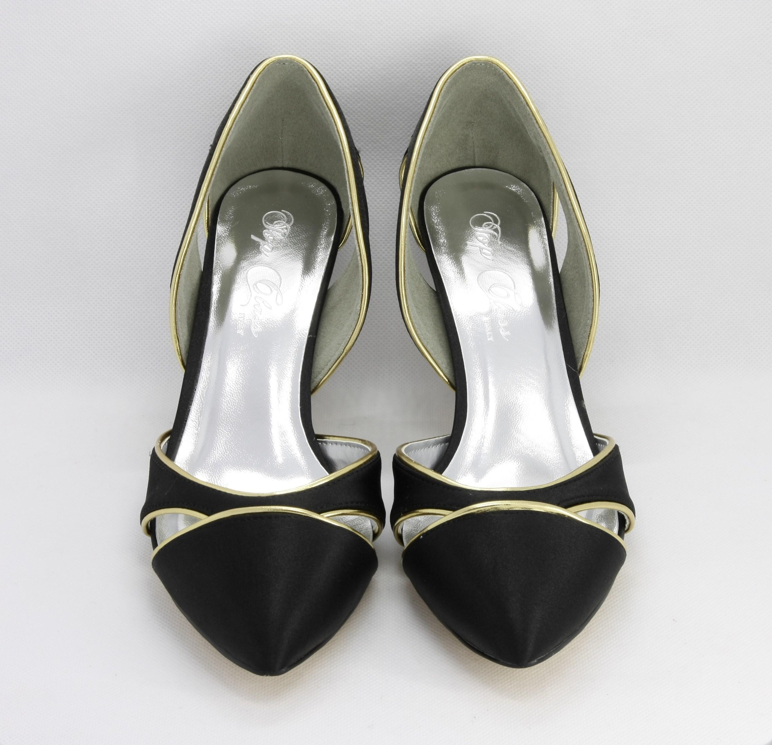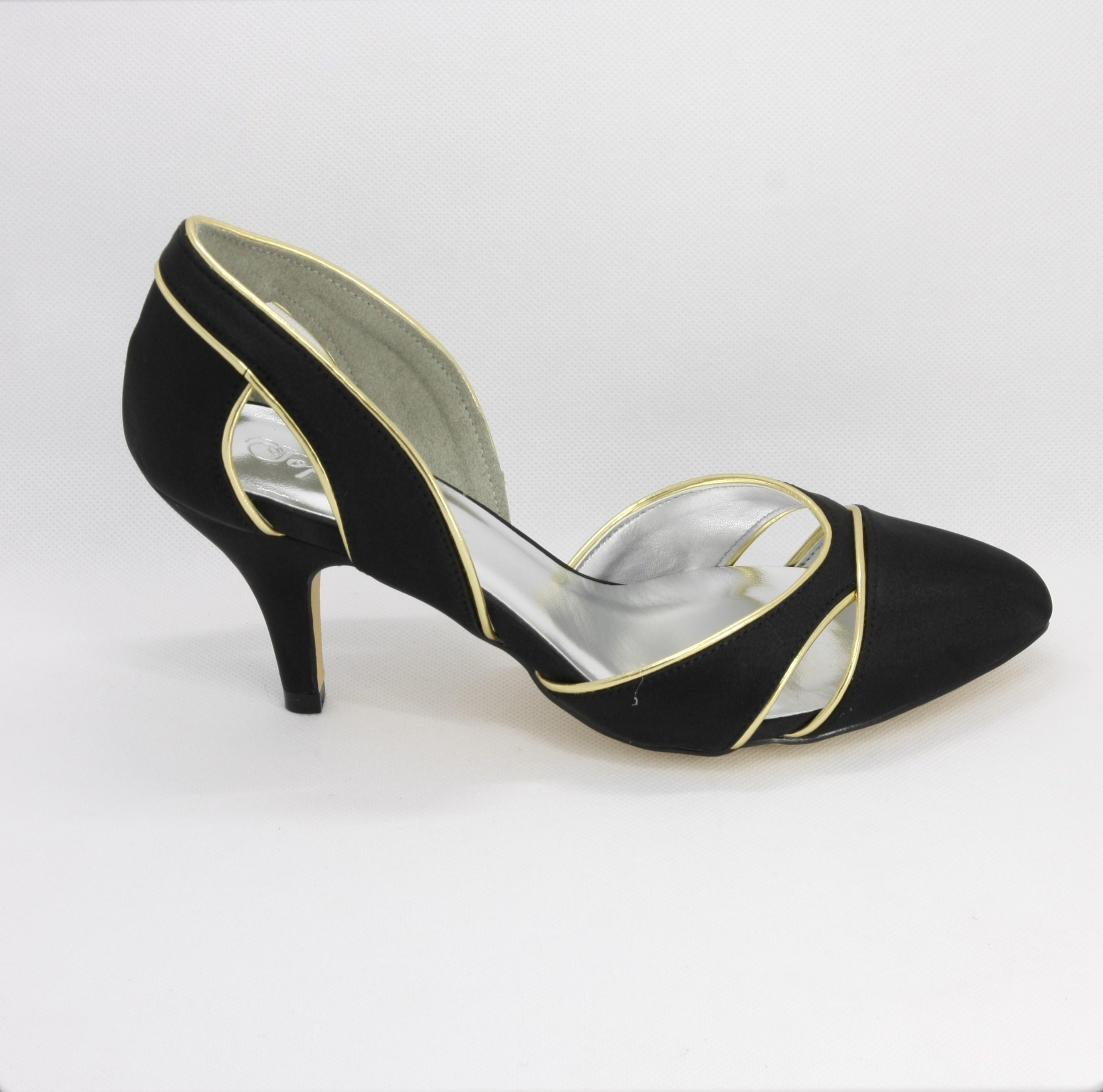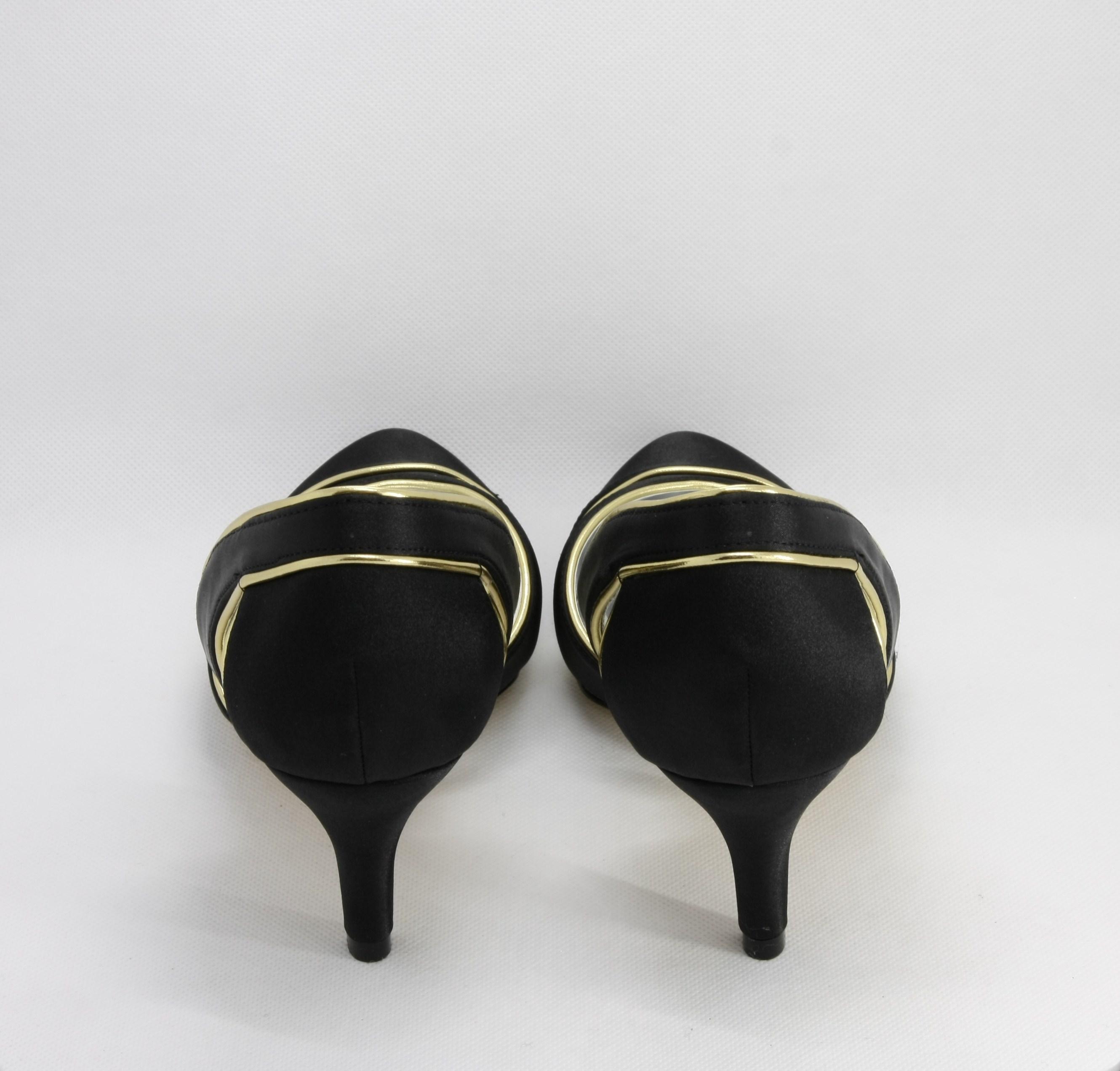 Materiale parte superiore: tessuto di raso nero con inserti ecopelle oro