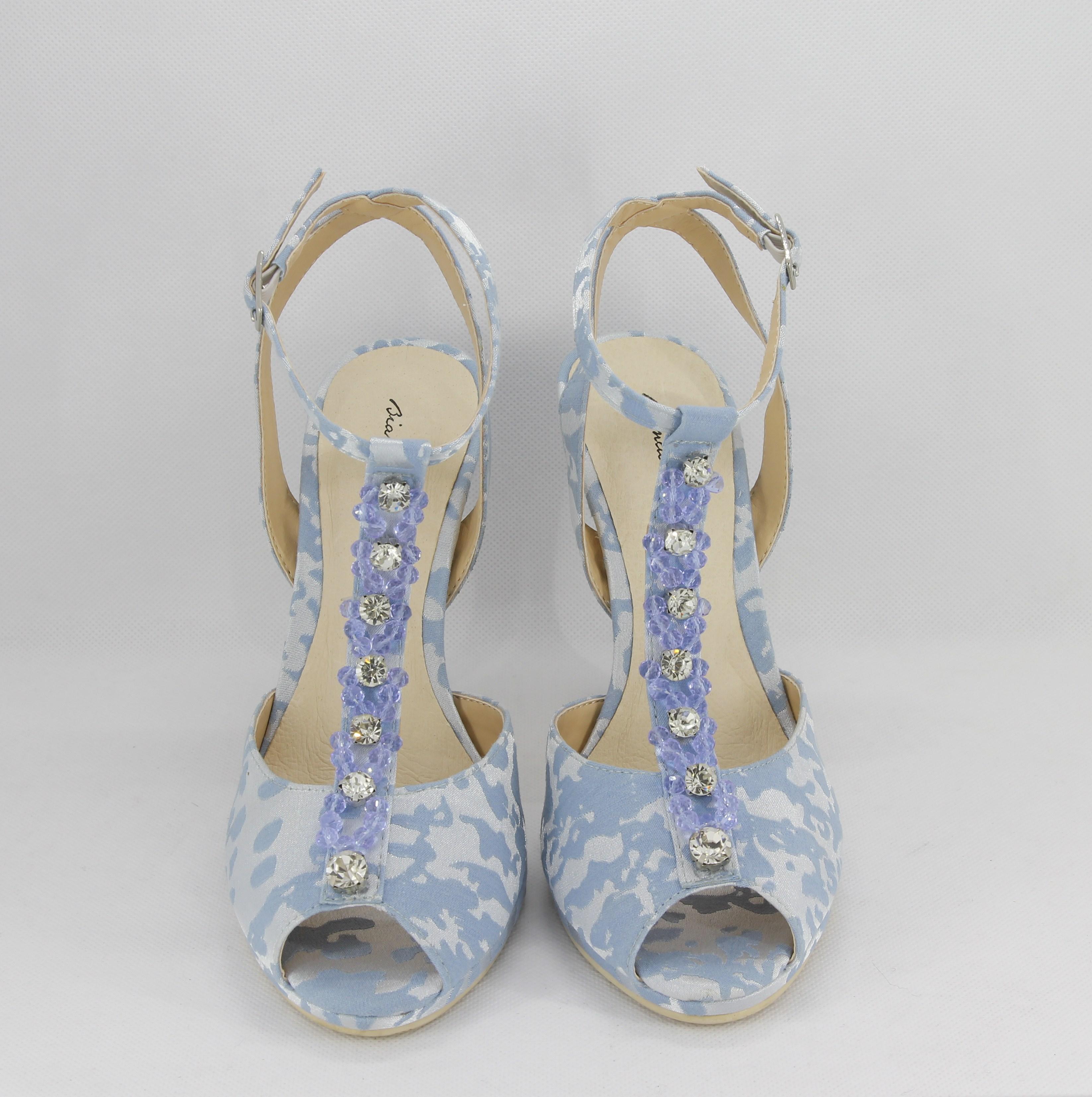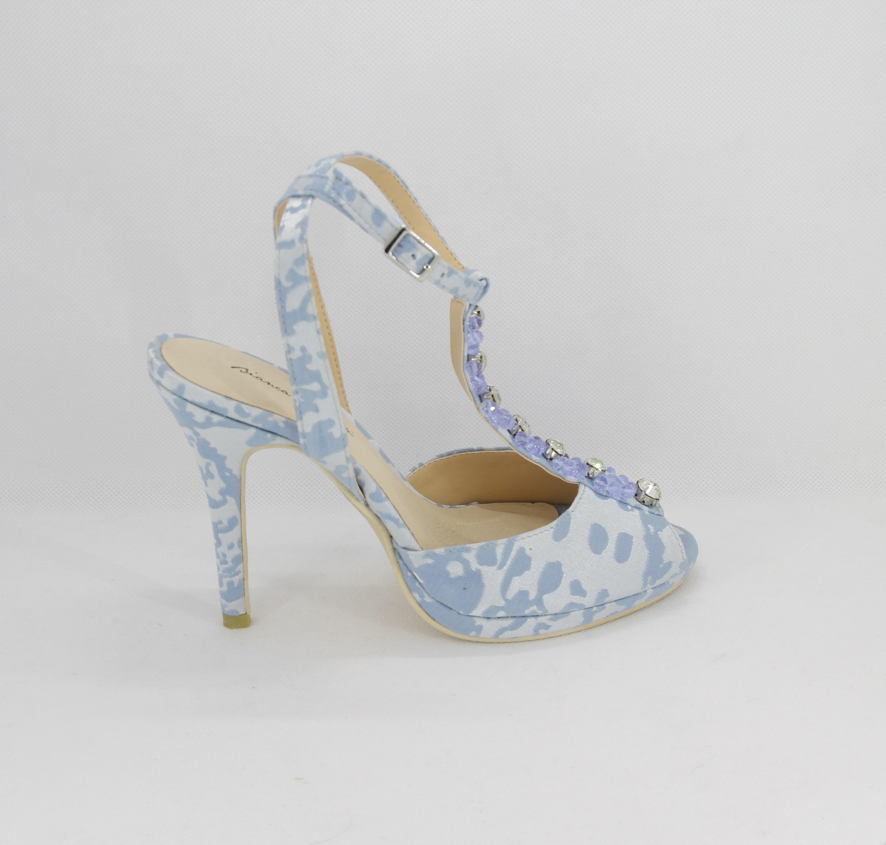Materiale parte superiore: tessuto raso damascato con applicazioni cristalli e strass